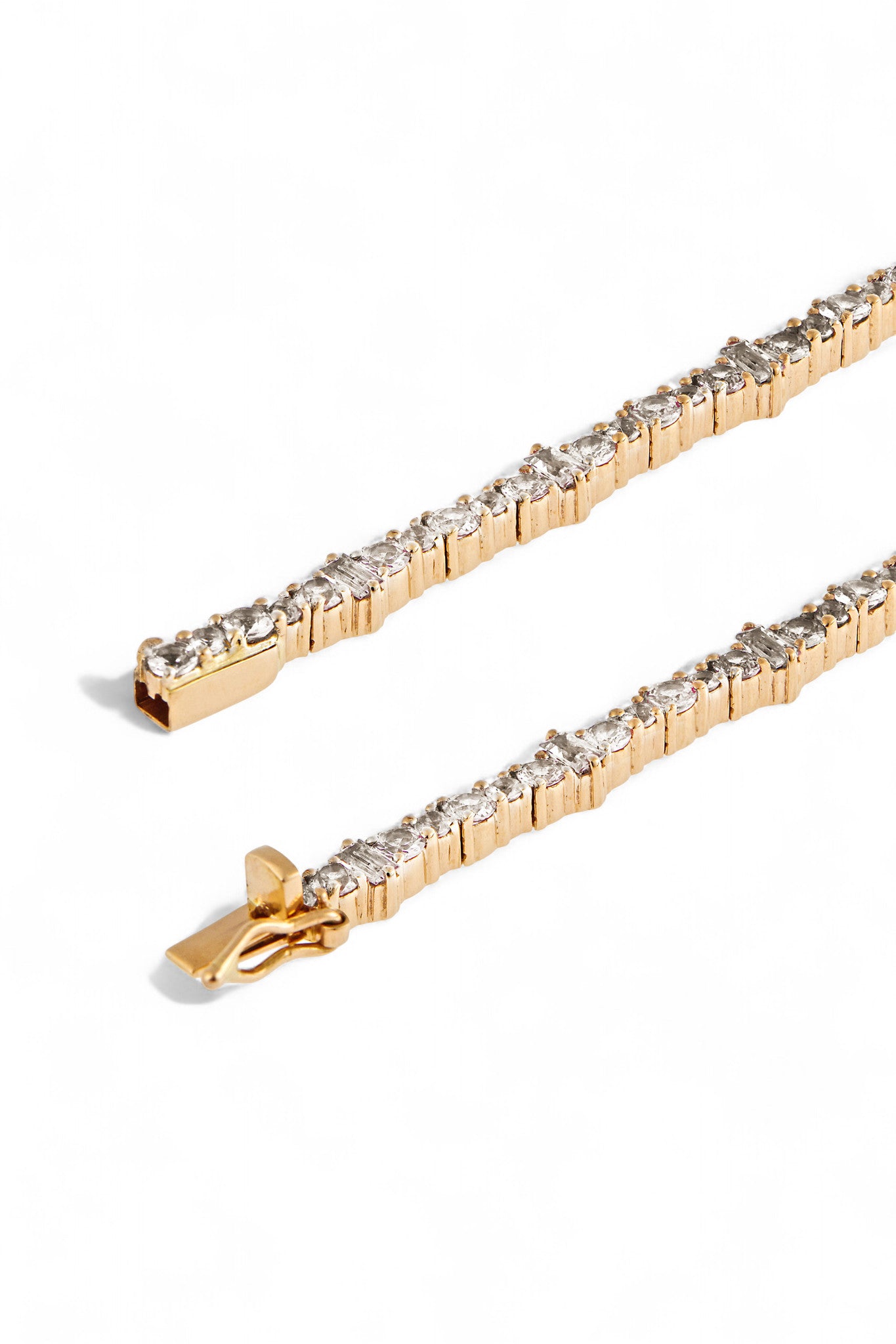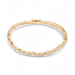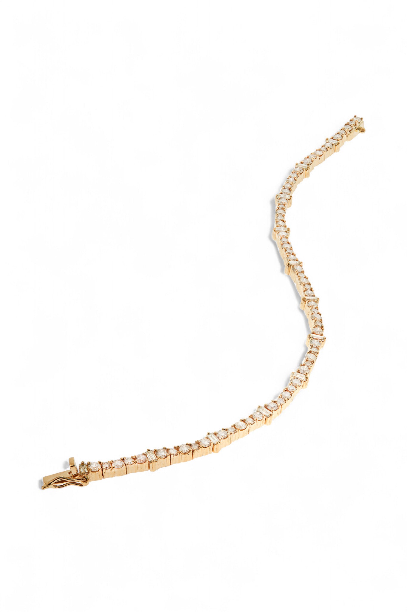 A study in movement and light, Ileana Makri’s Champagne Diamond Rivulet Bracelet captures the fluid rhythm of a river’s flow. Handcrafted in 18k yellow gold, this sculptural tennis-style bracelet shimmers with an artful mix of round and baguette-cut light champagne diamonds, creating a soft, liquid sparkle against the skin. Elegant on its own or layered, it’s a timeless piece defined by quiet luxury and impeccable craftsmanship.