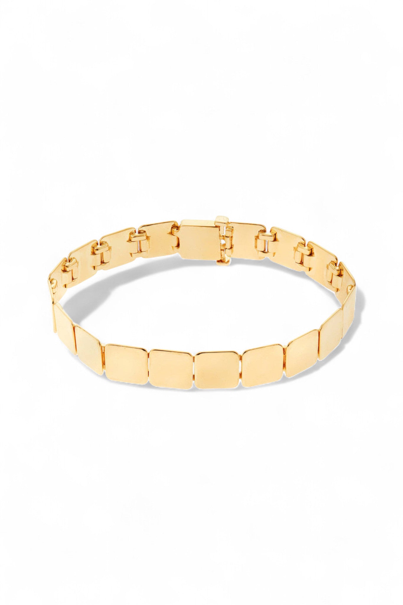 This Large Tile Single Bracelet from Ileana Makri is a sophisticated accessory crafted from 18k yellow gold and featuring 9mm wide polished tiles. It adds a stylish touch to any ensemble, and its refined details make it super comfortable - you won't want to take it off.