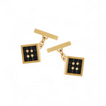 A sophisticated fusion of modern geometry and classic elegance, Ileana Makri’s Onyx Button Cufflinks elevate any formal ensemble with their understated luxury. Expertly handcrafted in 18k yellow gold, each cufflink features a sleek square silhouette framed in satin-finished gold and accented with a striking black onyx inlay. At the center, four round white diamonds are set atop meticulously arranged black diamond baguettes, creating a subtle yet powerful contrast of depth and sparkle. These cufflinks are an impeccable choice for the discerning gentleman—refined, modern, and timeless.