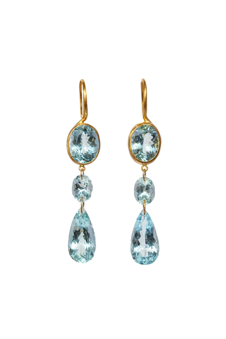22K Yellow Gold Aquamarine and Beryl Elizabeth T Earrings |