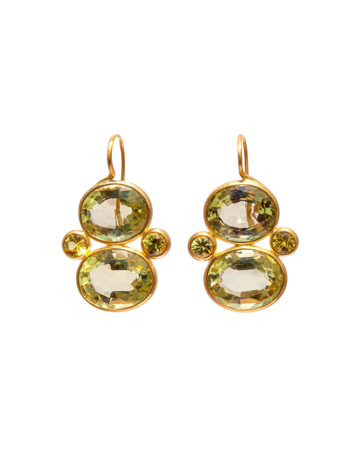 22K Yellow Gold Lemon Quartz and Yellow Sapphire Sophia Earrings