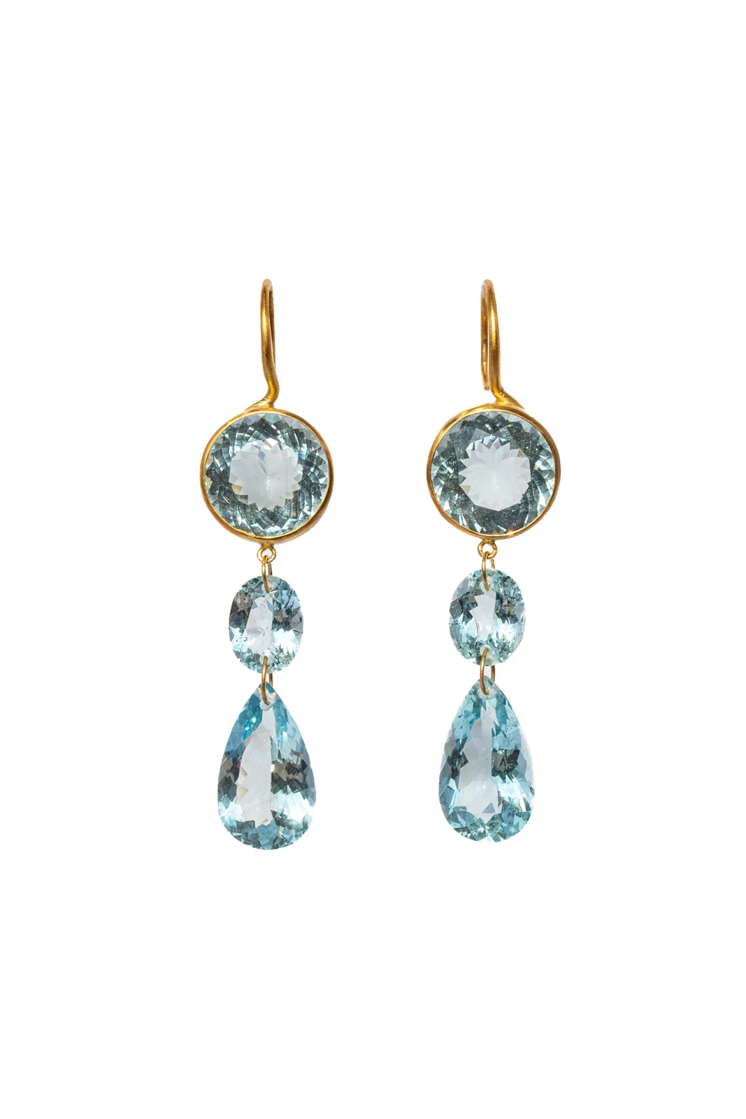 22K Yellow Gold Aquamarine and Paraiba Tourmaline Elizabeth T Earrings |