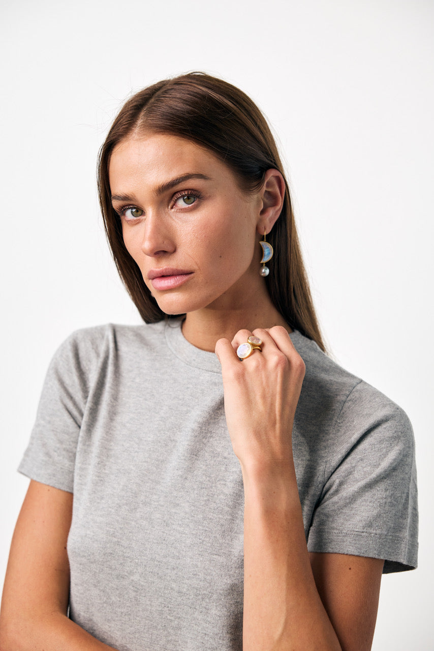 22K Yellow Gold Rainbow Moonstone: 21.35 cts Pearl: 13.57cts |