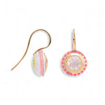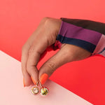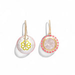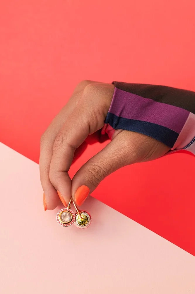 Alice Cicolini’s Silver Tile Round Earrings bring vibrant color and intricate craftsmanship to everyday elegance. Hand-lacquered sterling silver is paired with 14k yellow gold hooks and a 22k gold bezel framing soft rose quartz. Inspired by the tiled domes and patterned architecture of Uzbekistan, these earrings feature Cicolini’s signature neon enamel detailing—modern, graphic, and unmistakably her. Made in London.