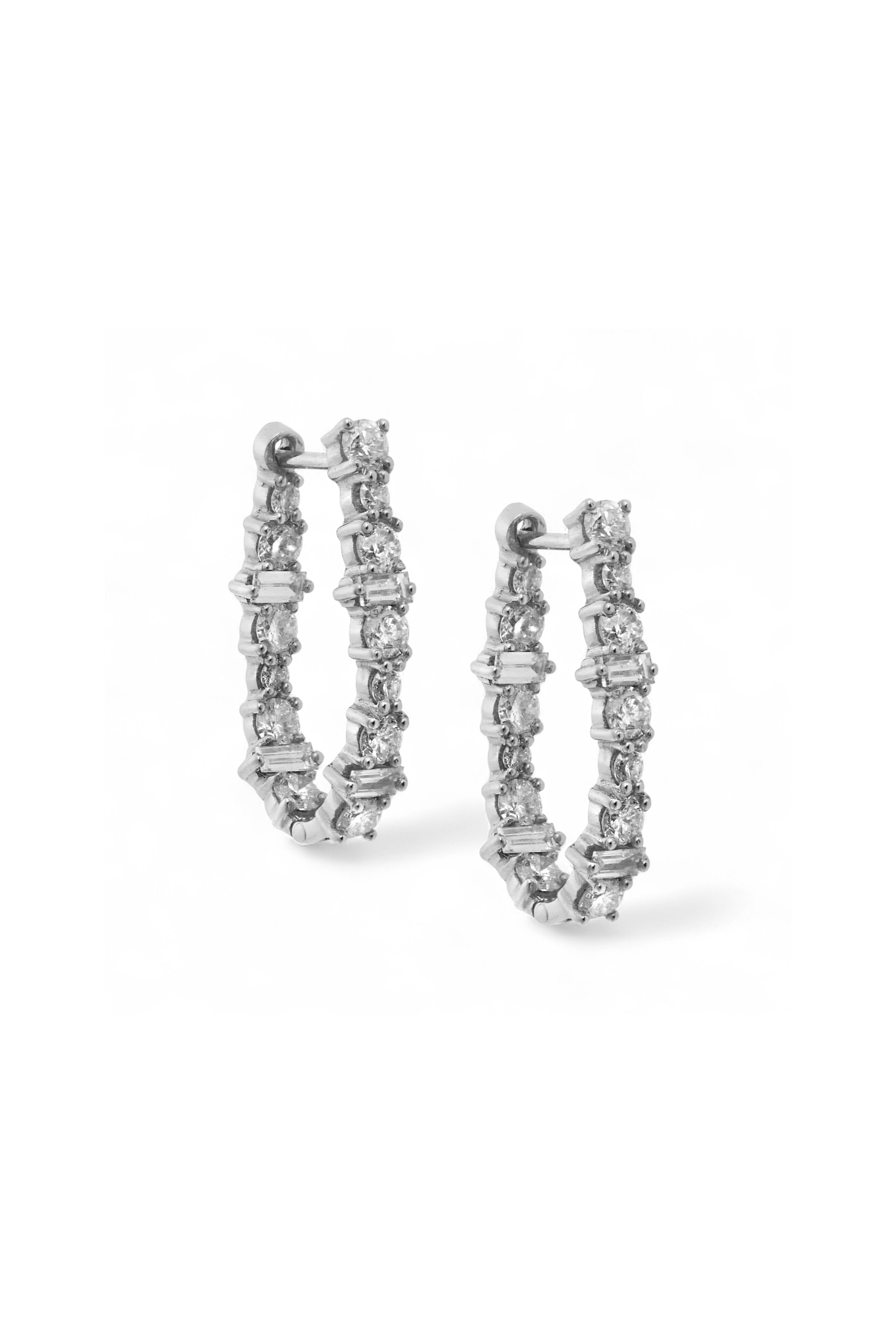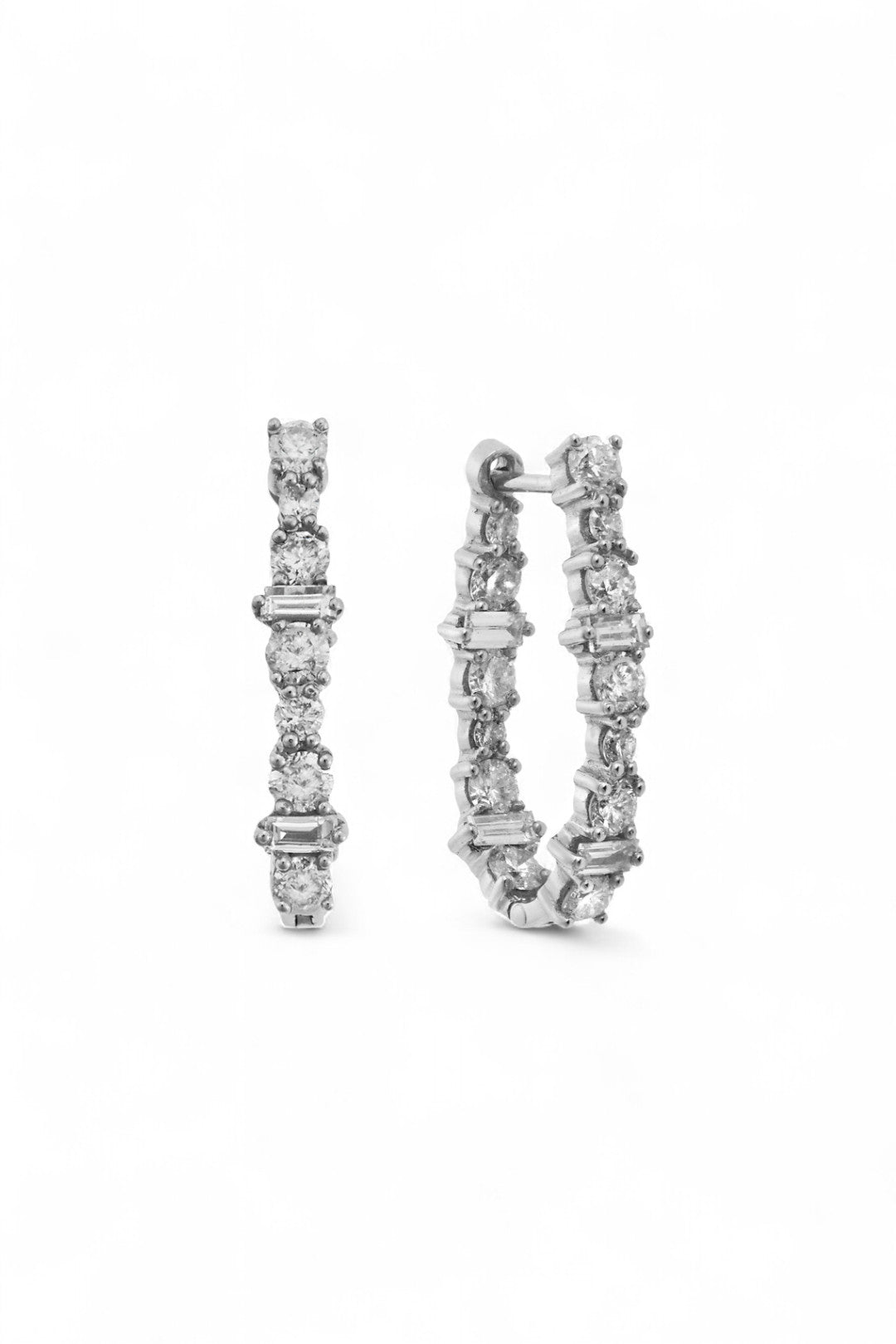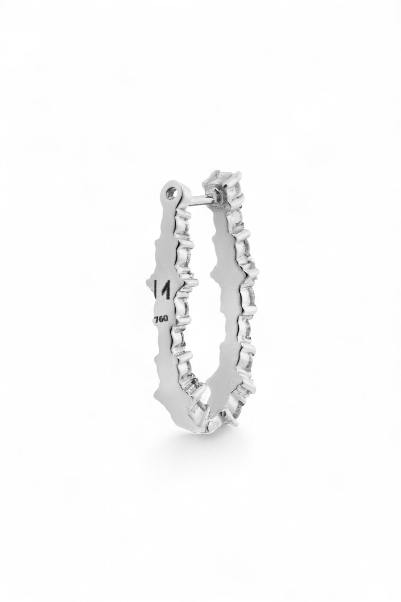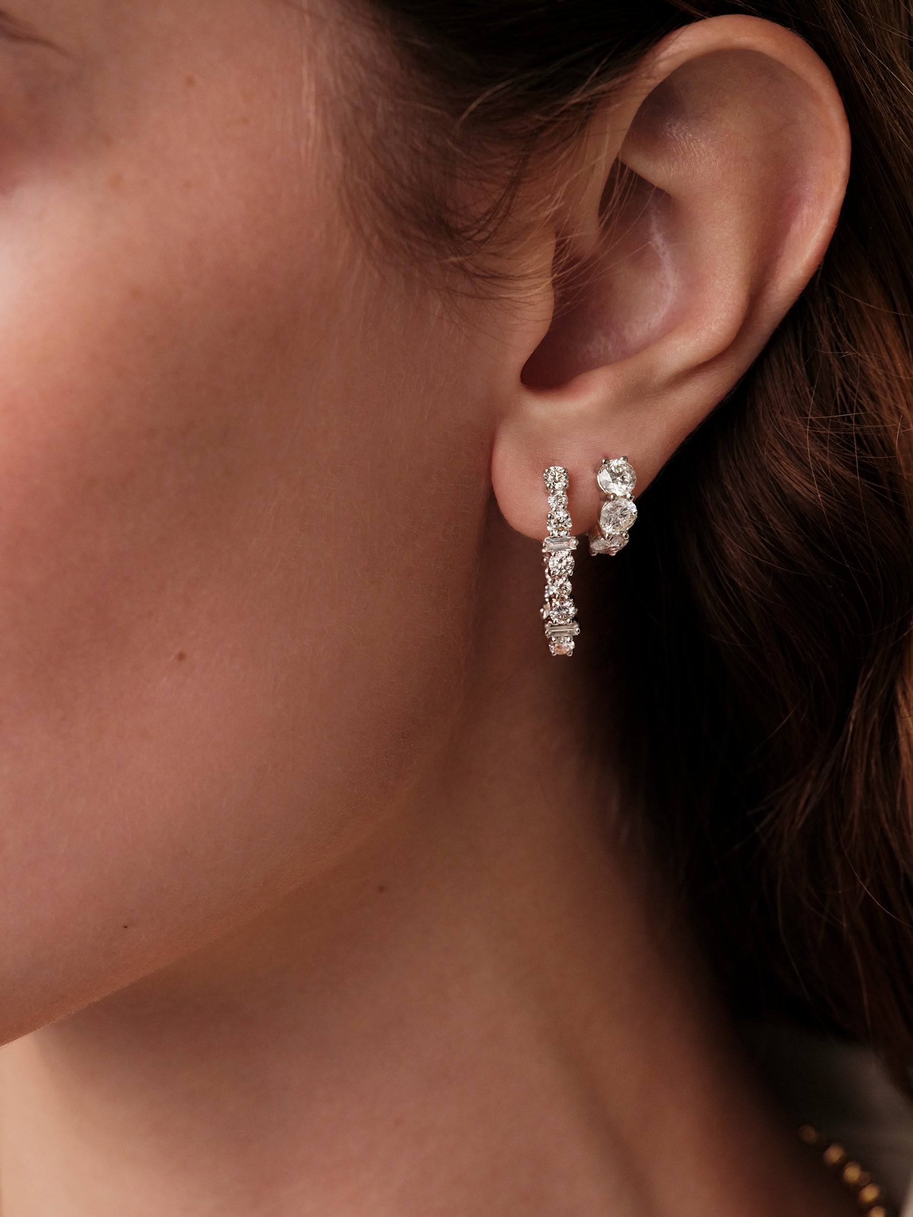 A luminous take on a timeless silhouette, Ileana Makri’s Large Oval Rivulet Hoops are crafted in 18k white gold and set inside and out with a shimmering mix of baguette and round white diamonds. Their signature rivulet pattern creates a flowing, liquid sparkle from every angle. Refined yet striking, these hoops elevate both everyday looks and evening moments with effortless brilliance.