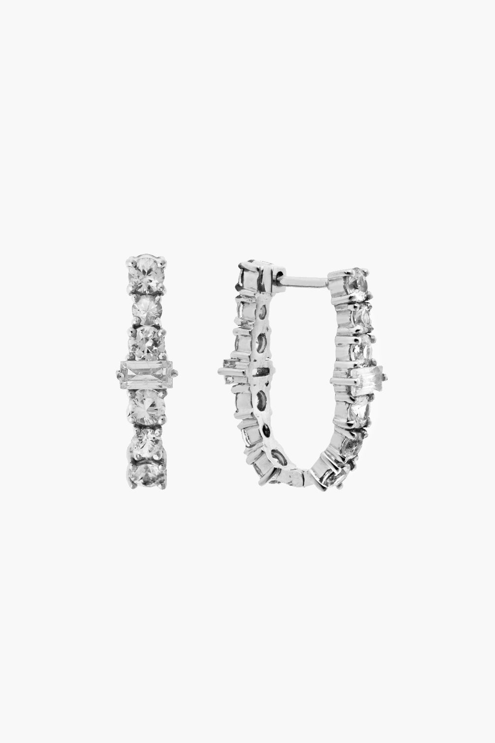 An artisan's delicate touch and the utmost quality 18k white gold define these stunning Oval Rivulet Hoops by Ileana Makri, decorated with an exquisite diamond rivulet spread of baguette and round white diamonds. Enrich any outfit with these luxurious hoops for an elegant and sophisticated look.