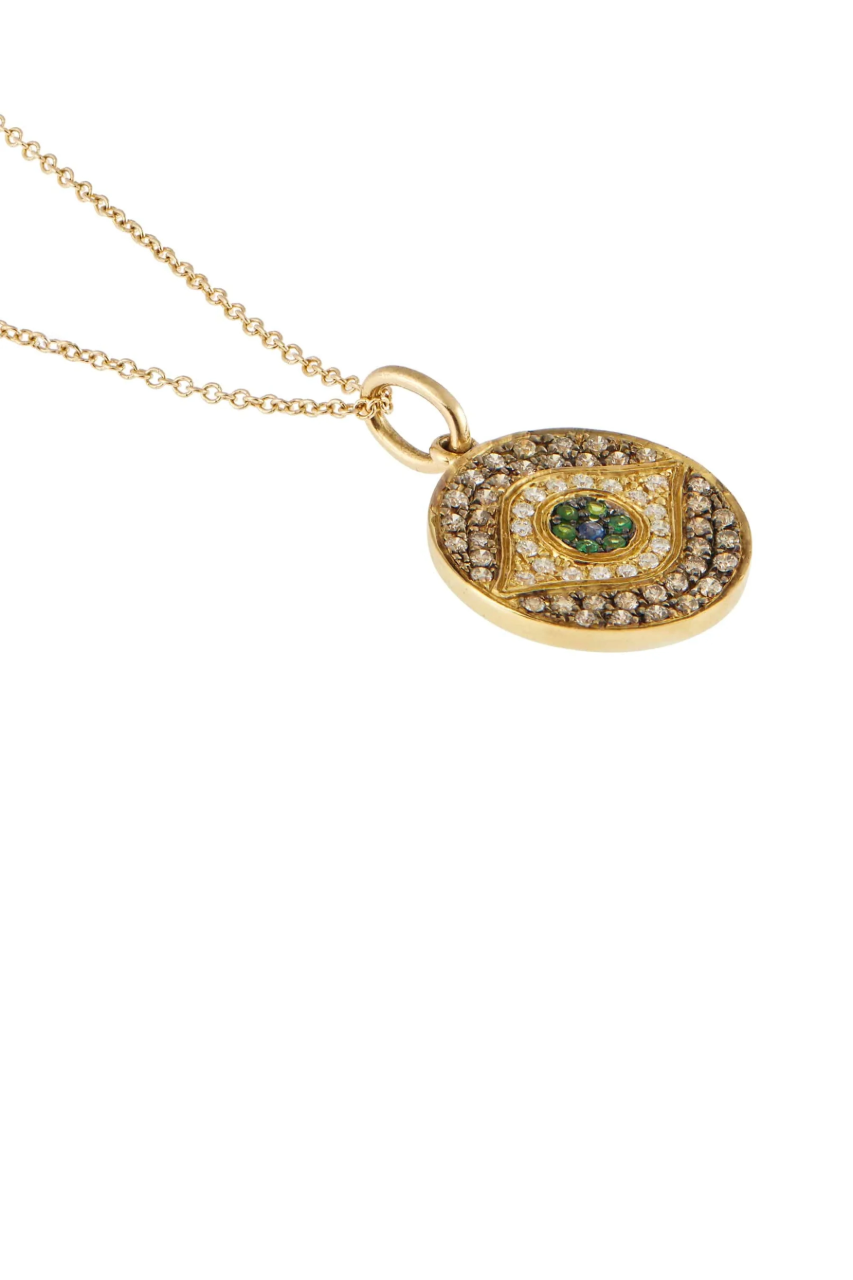 Ileana Makri 18K Yellow Gold Little Dawn Pendant with Tsavorites, Blue Sapphire, and White and Champagne Diamonds