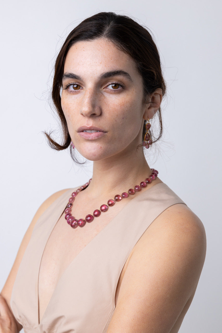 20K Yellow Gold Pink Tourmaline Mixed Link Ladylike Necklace |