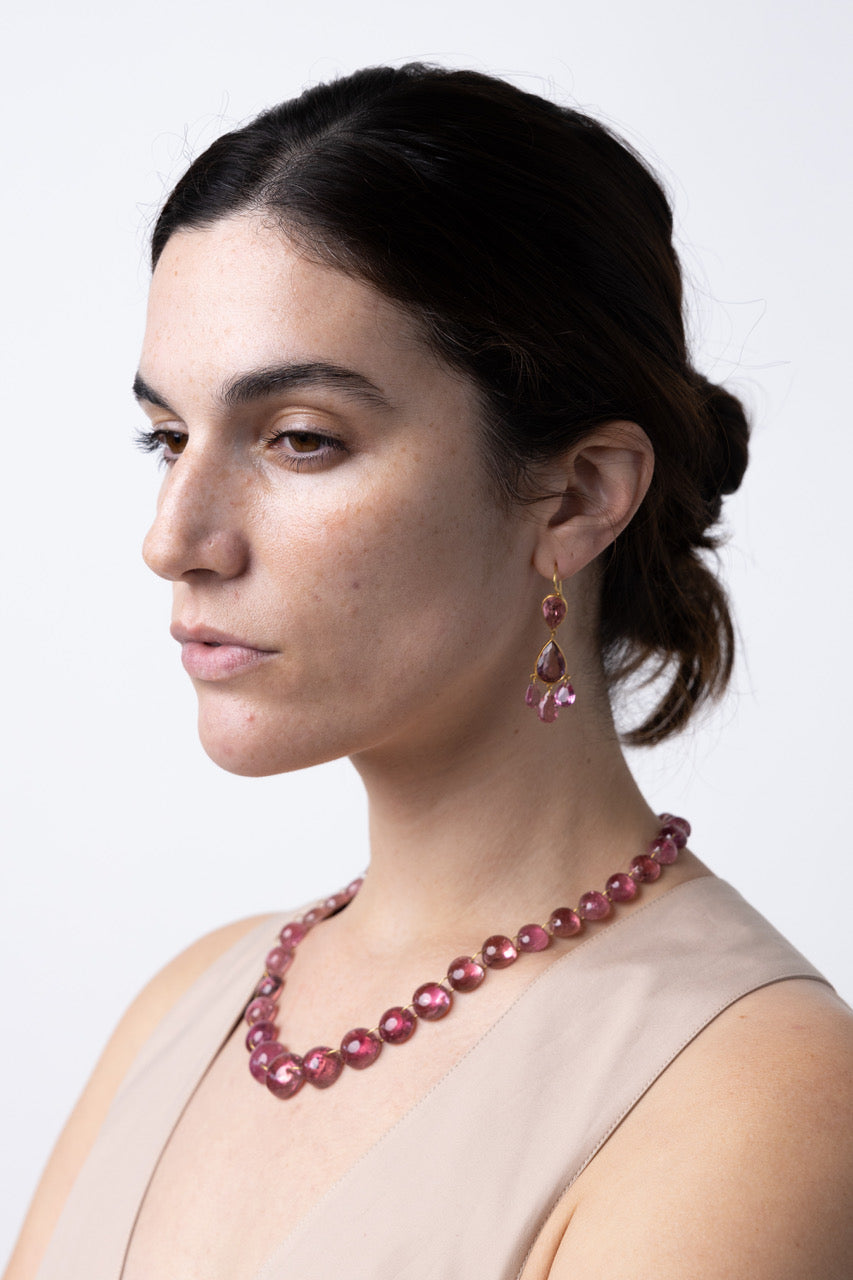 Marie-Hélène De Taillac 20K Yellow Gold Pink Tourmaline Mixed Link Ladylike Necklace