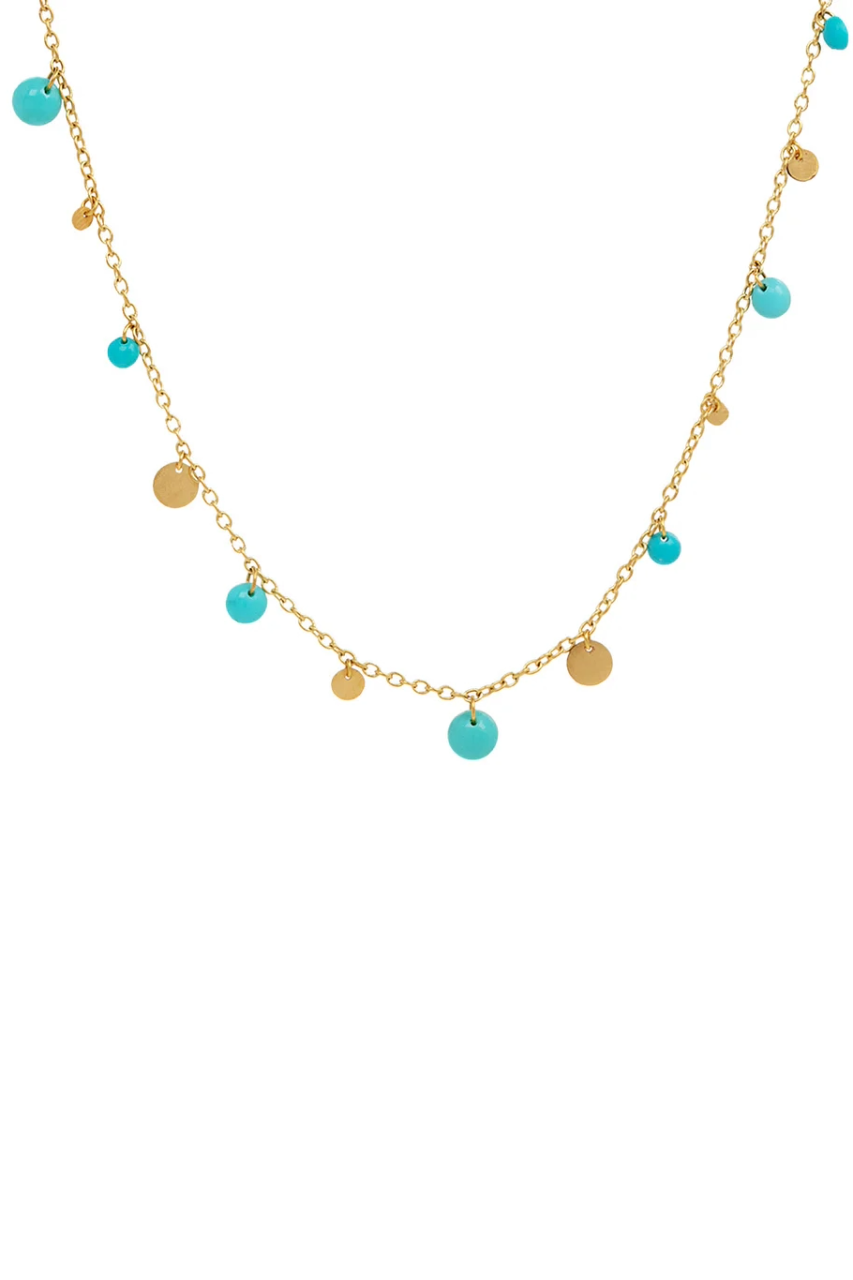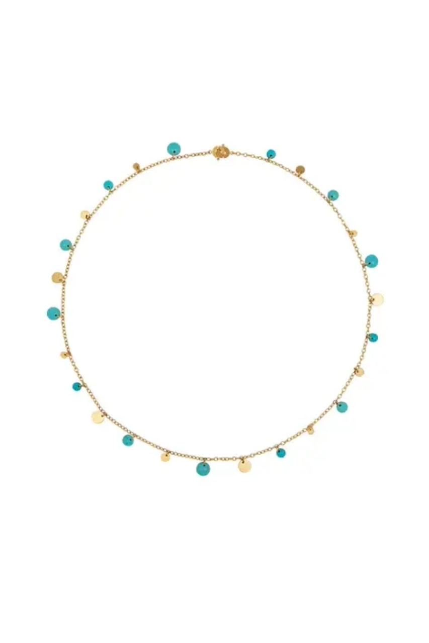 Marie-Hélène De Taillac 22K Yellow Gold 17" Extra Small Dangling Sequins and Turquoise Necklace