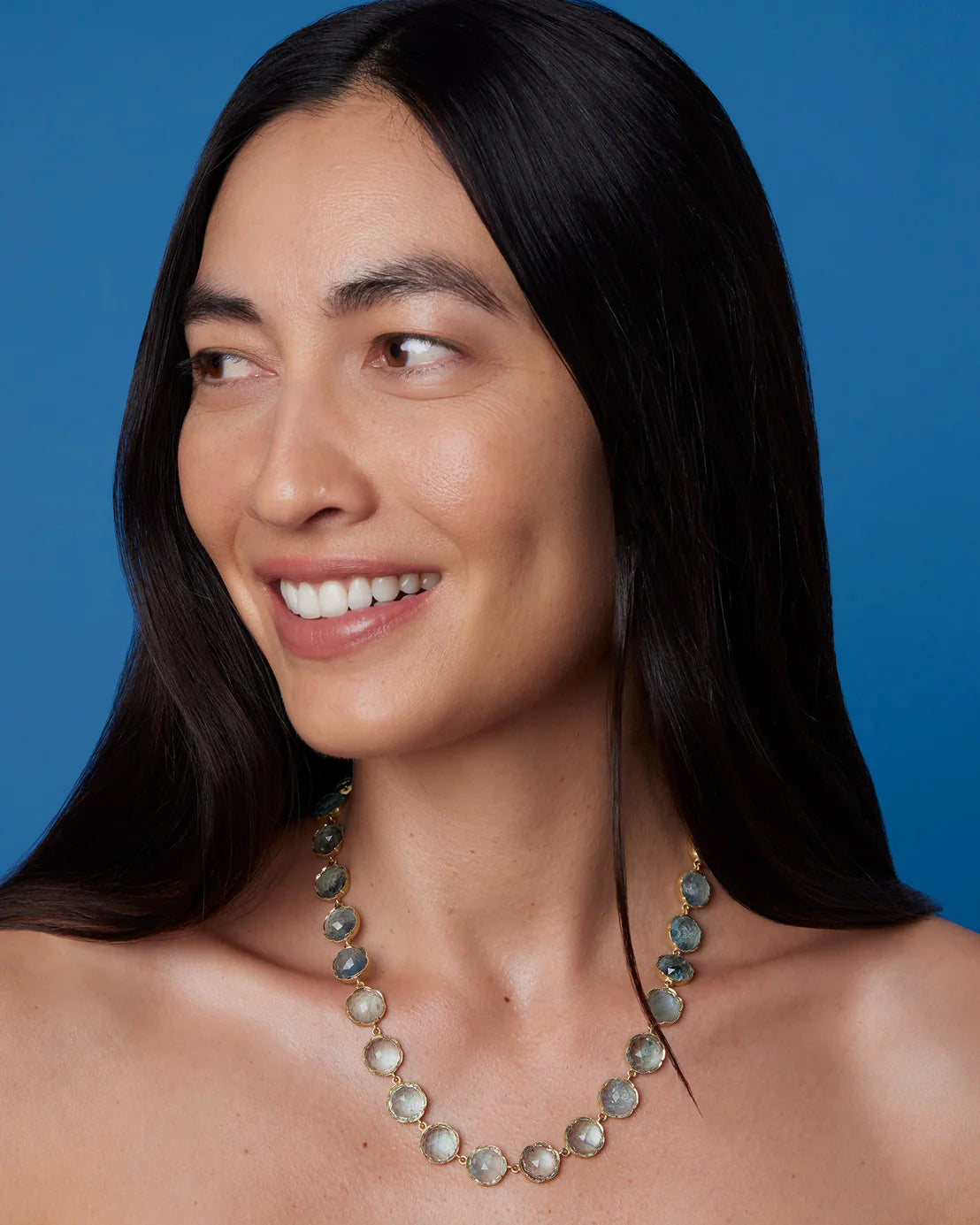 Irene Neuwirth Classic 18K Yellow Gold 18" Necklace Set with Rose Cut Fine Aquamarine