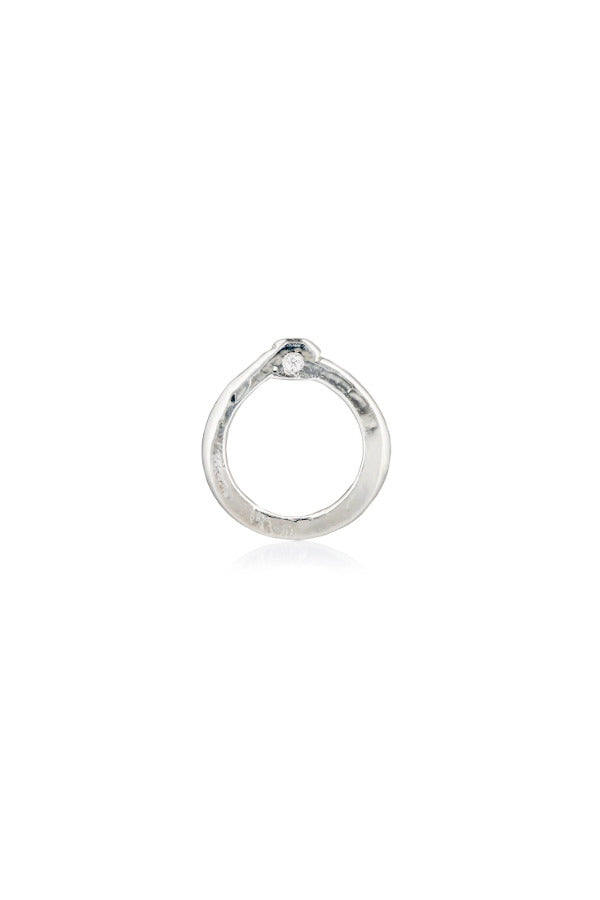 -Thin Sterling Silver Ring w/ 1 Diamond - 1 1.8mm white diamond - Textured sterling silver - This ring looks best stacked in multiples and layered with other sterling & diamond rings. Made in New York City |