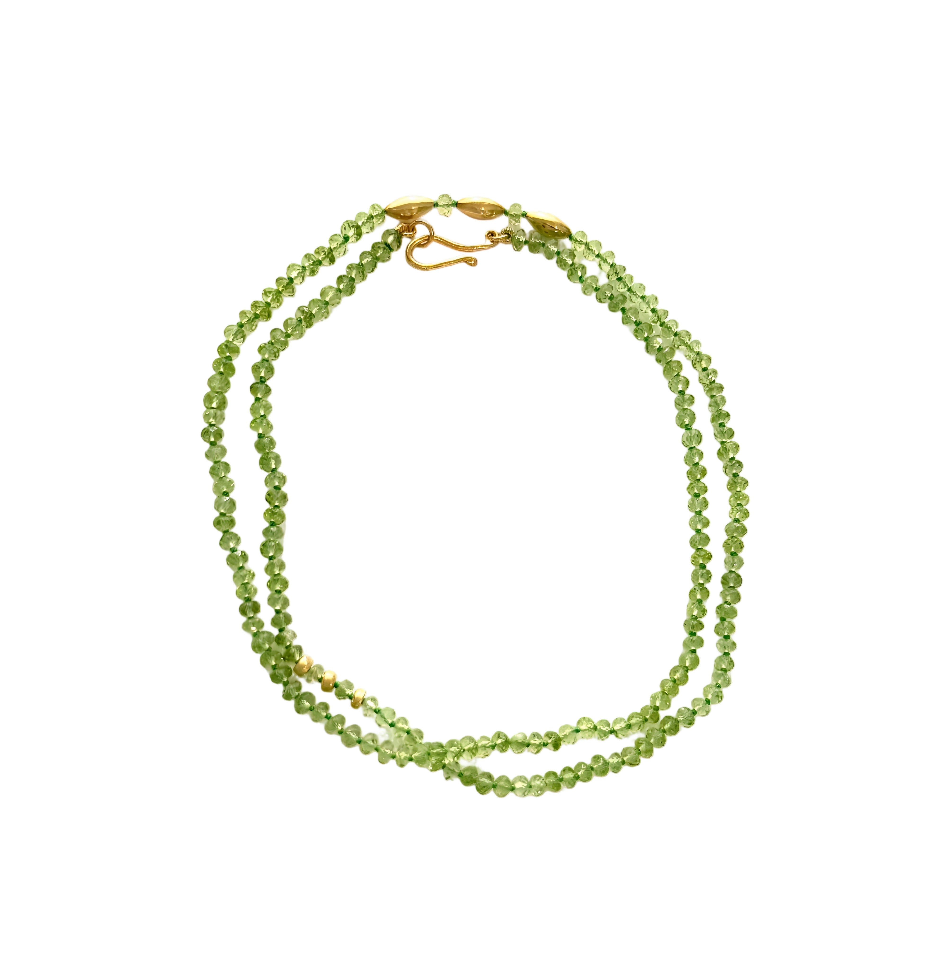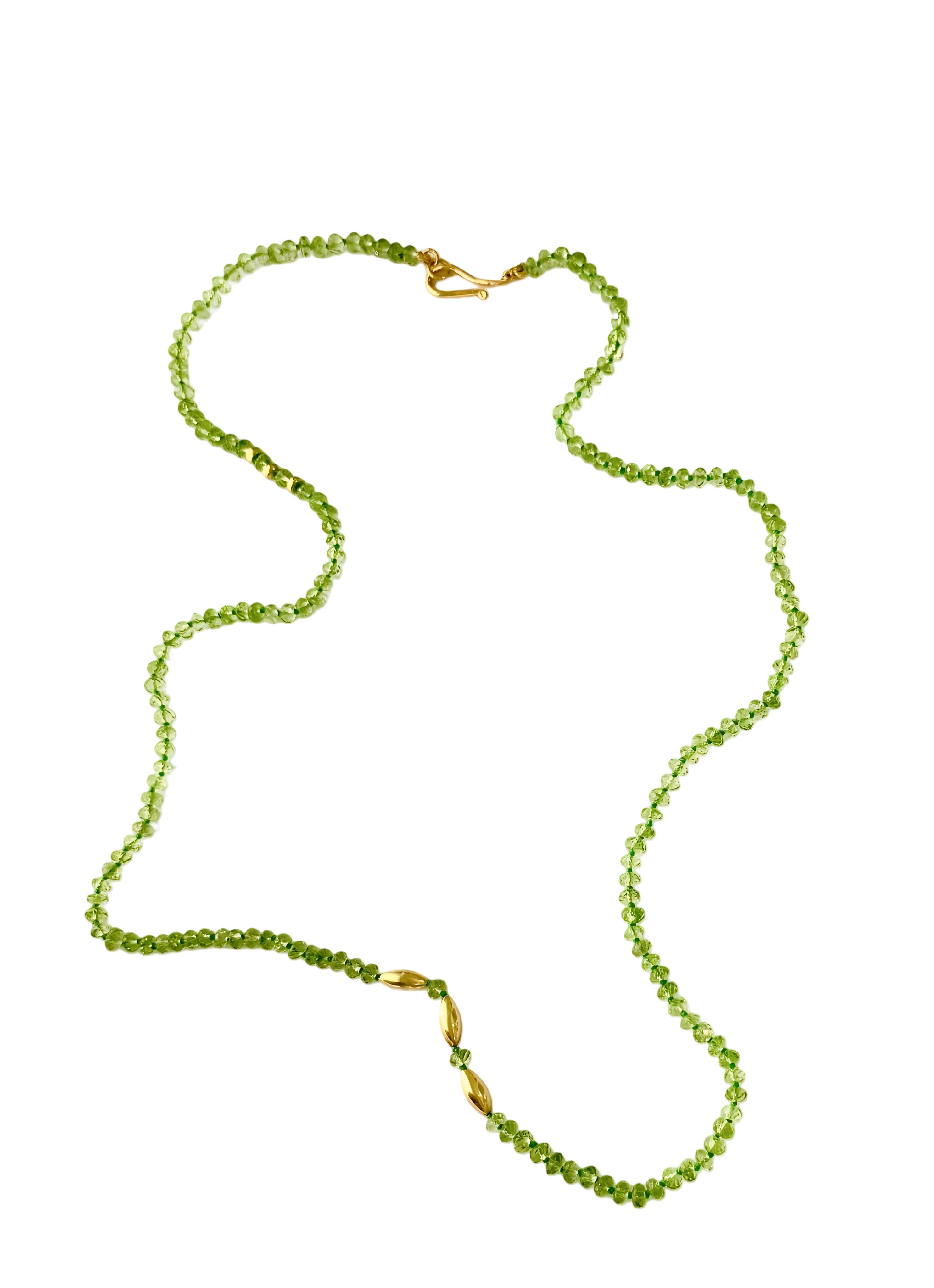 Darlene De Sedle 25" Necklace with 4mm Faceted Peridot Beads and 6 Indian Gold Beads