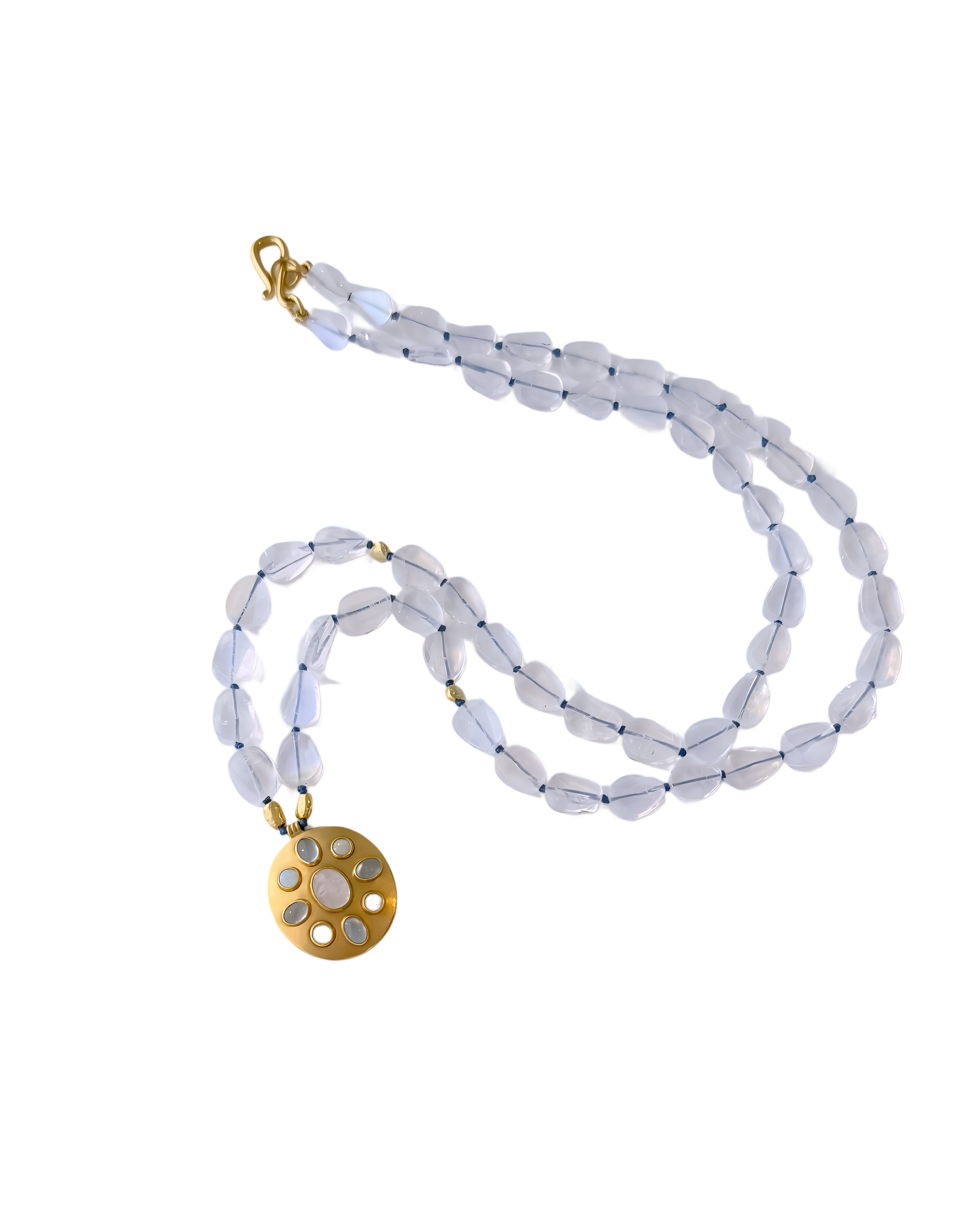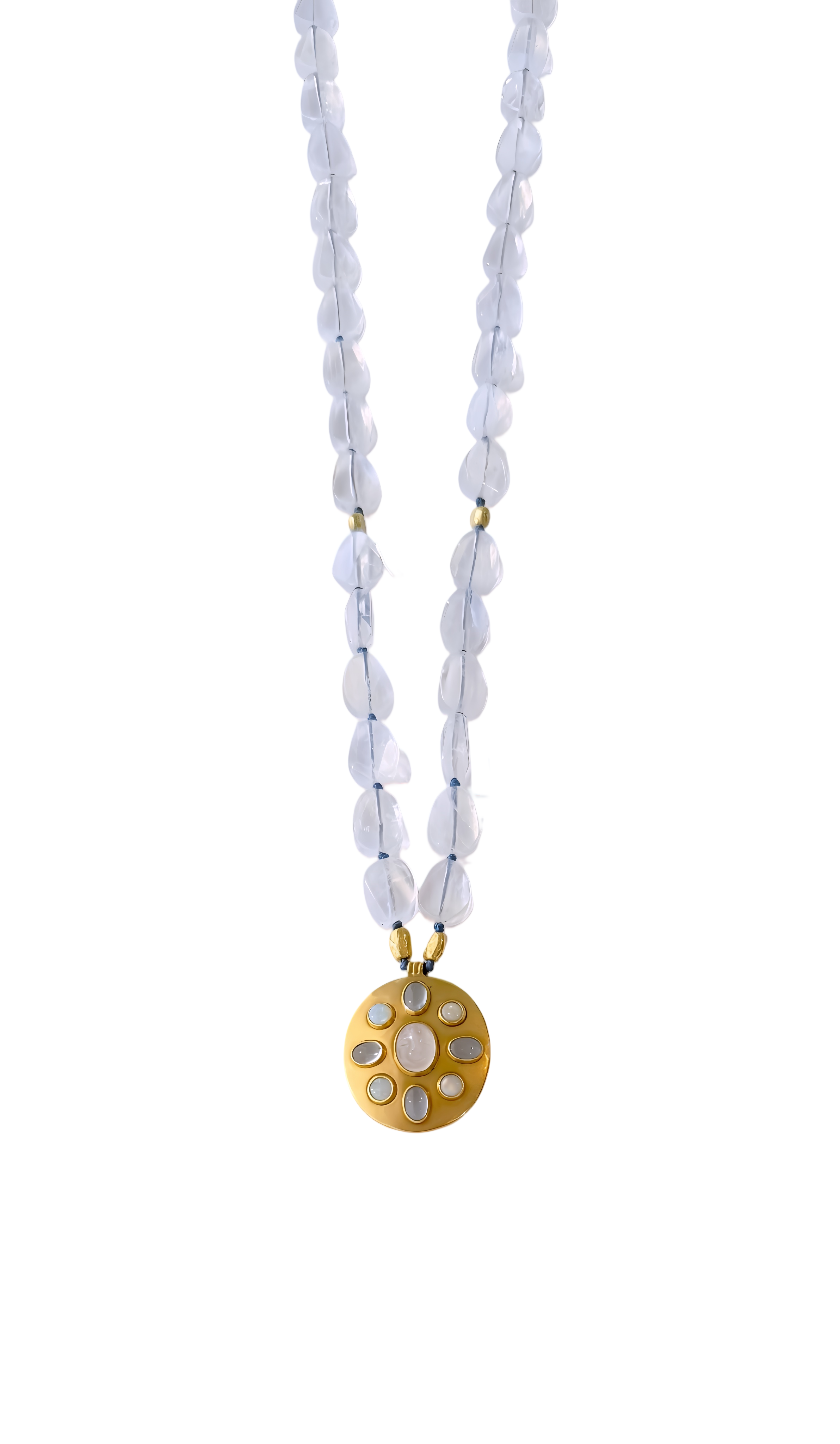 Darlene De Sedle 28" Gem Flat Rainbow Moonstone Neckalce with 22K Sheet Gold Disc Pendant with Moonstone, Aqua, and Opals