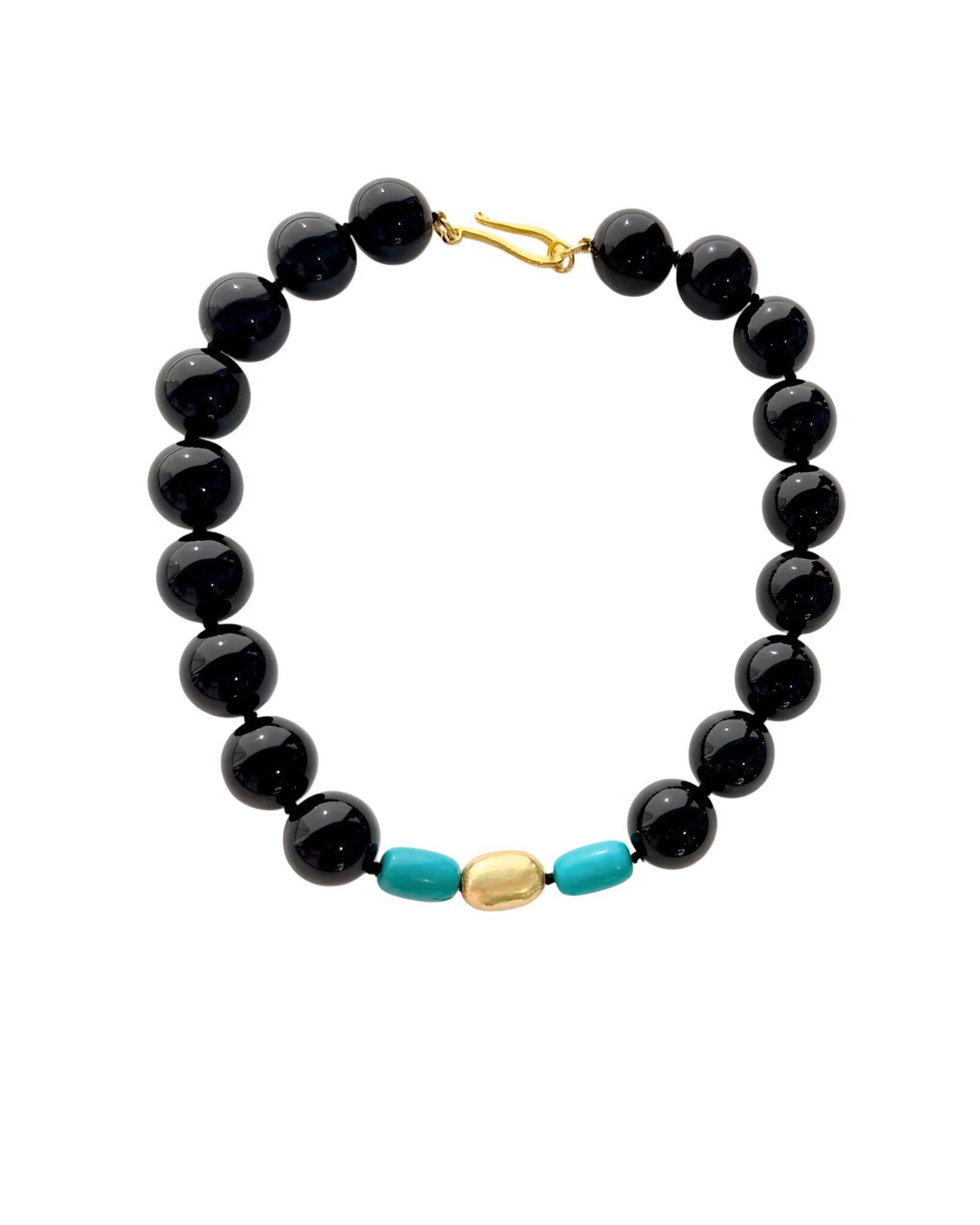 Darlene De Sedle 20" Necklace with Large Black Spinel, Turquoise, and 18K Indian Gold