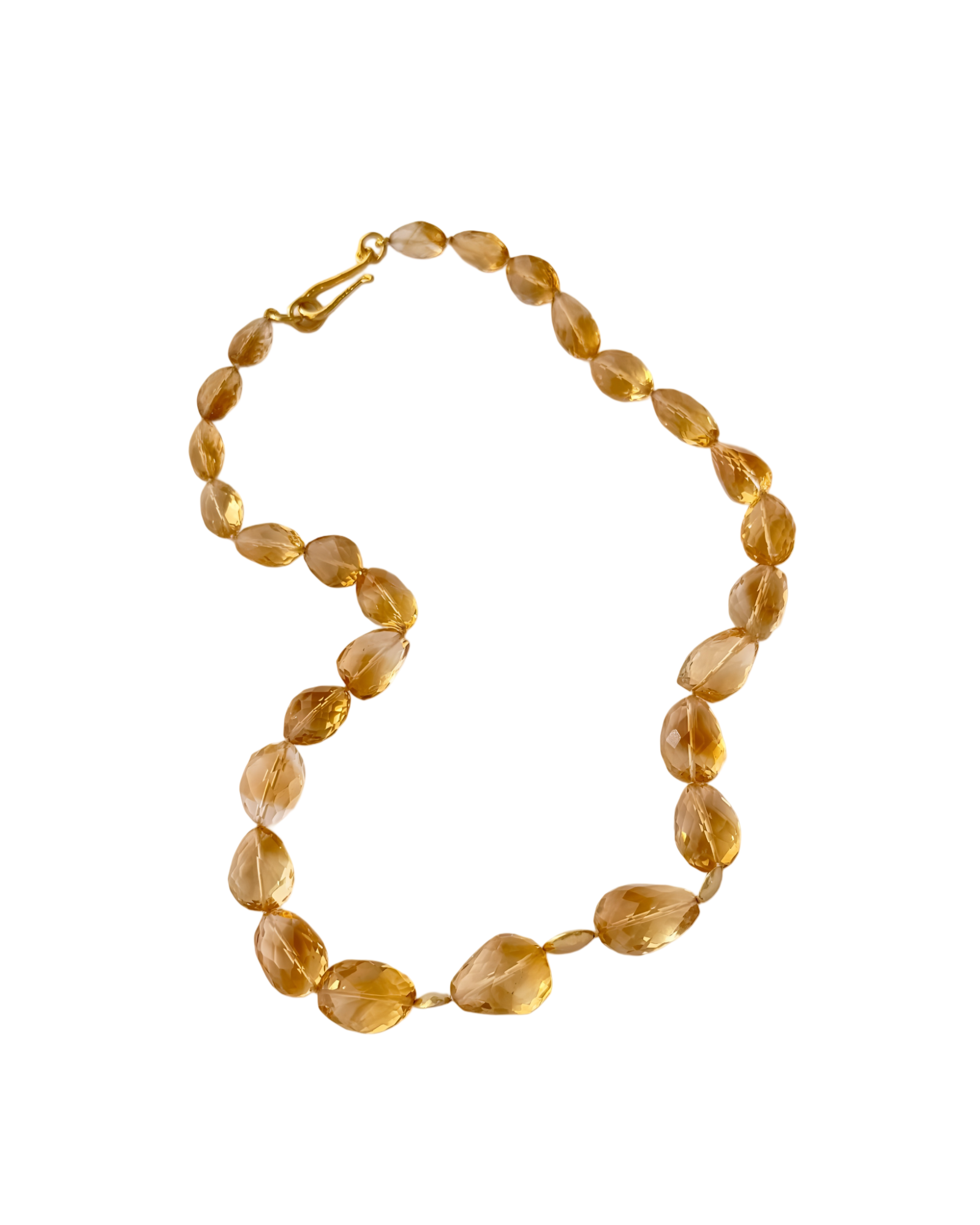 Darlene De Sedle 19" Tumbled Faceted Citrine Beads with 18K Indian Gold Discs