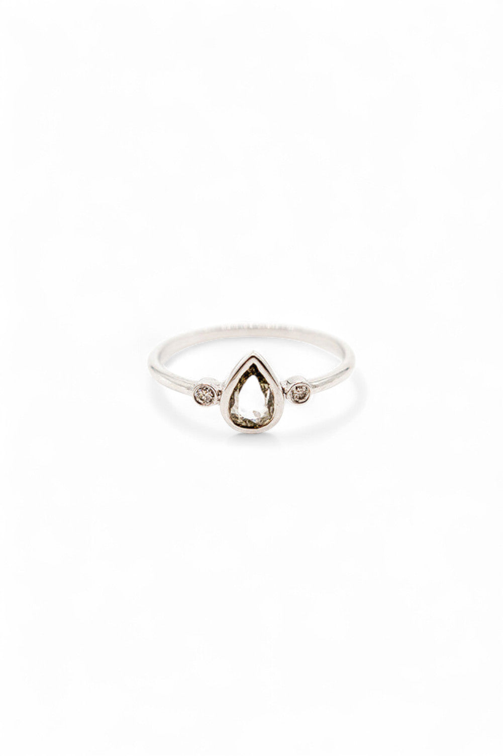 Ileana Makri 18K White Gold Diamond Tear Ring