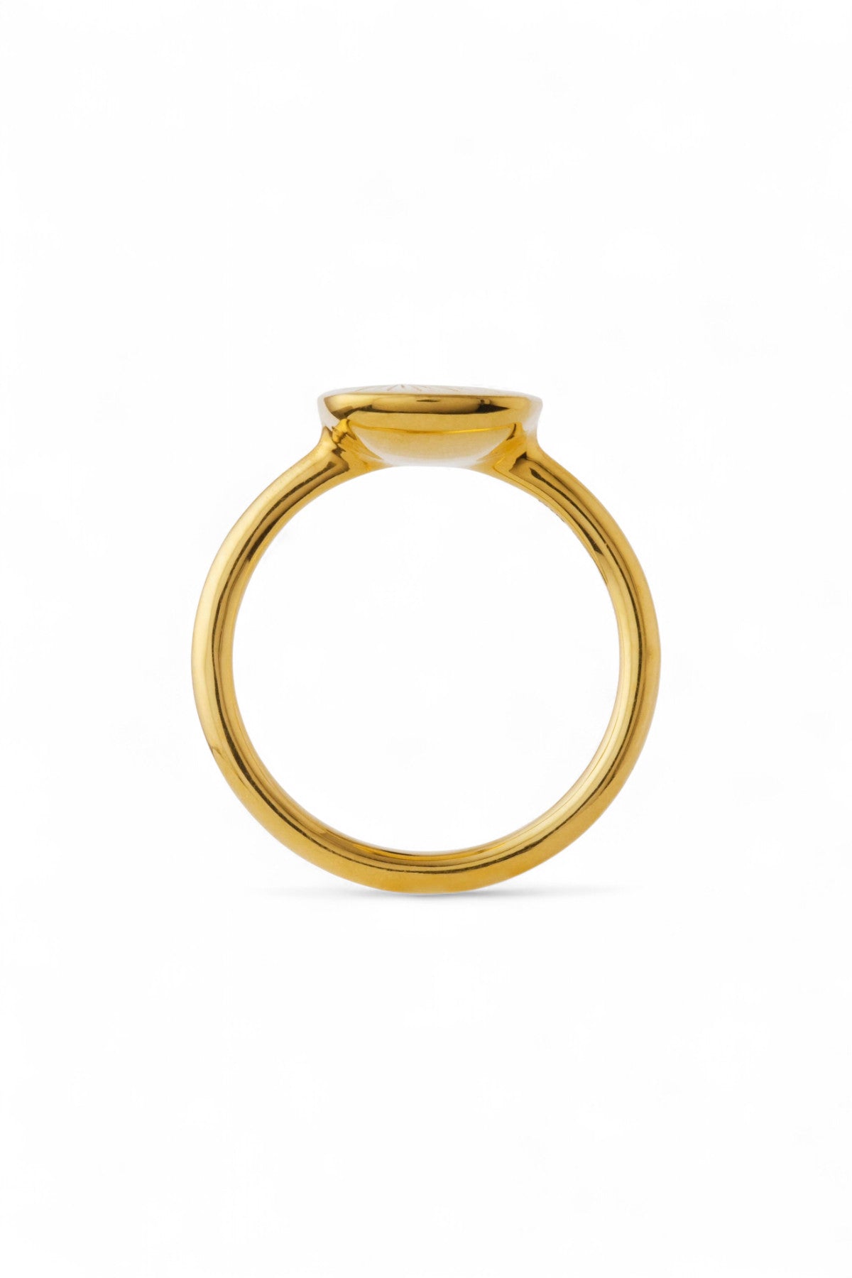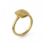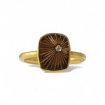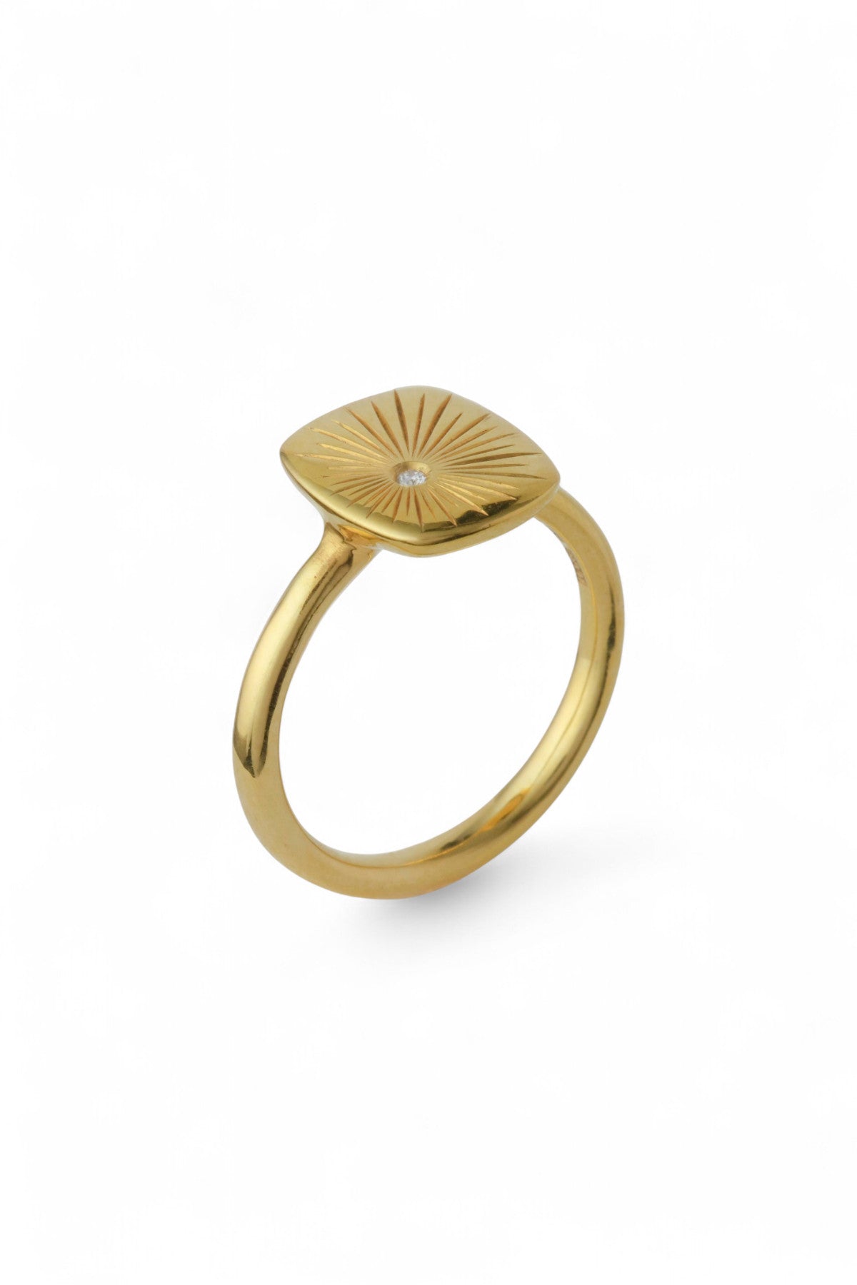 Hargreaves 18K Yellow Gold Into the Wild Starburst Ring. Hand engraved signature starburst set with one diamond