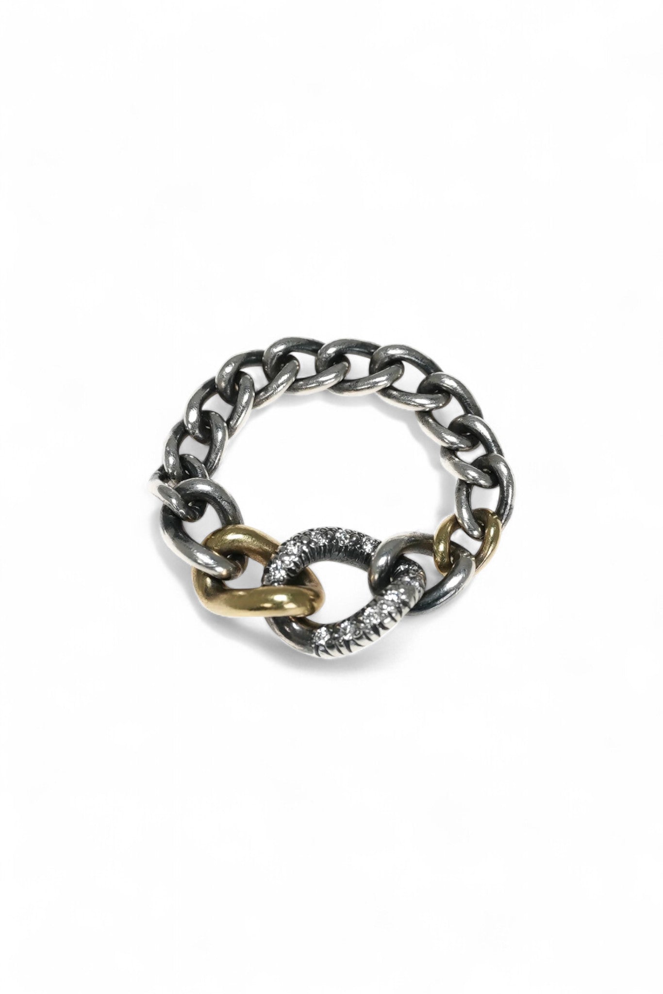 Hum Jewelry Tokyo 925 Silver and 18K Yellow Gold Chain Ring with .09cts