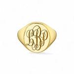 18K Yellow Gold Oval Signet Ring with Hand Engraved Customization |