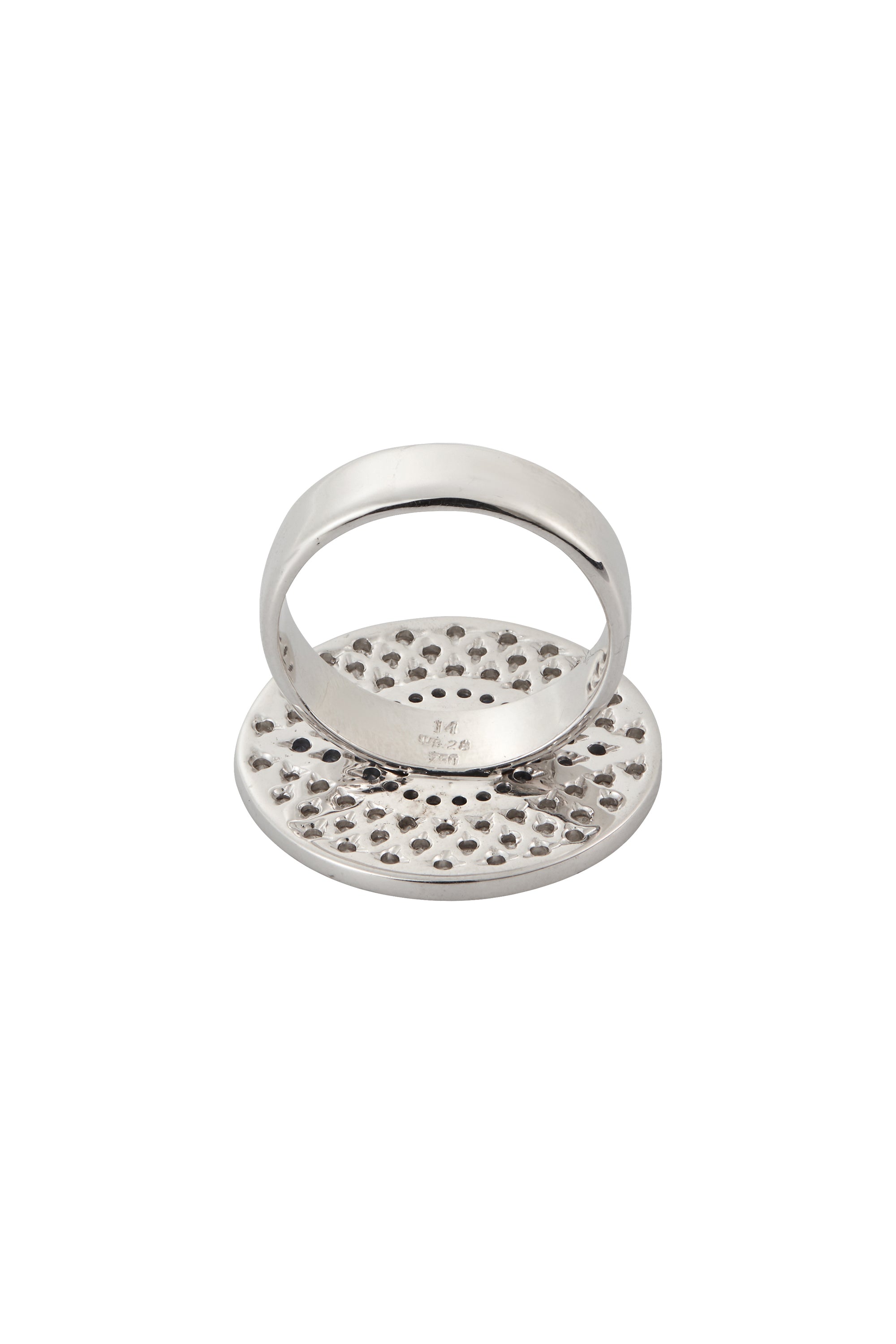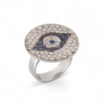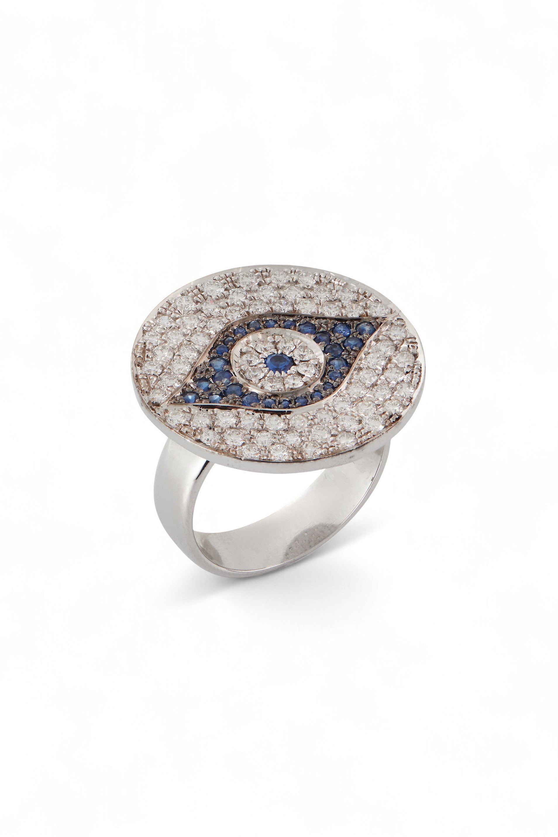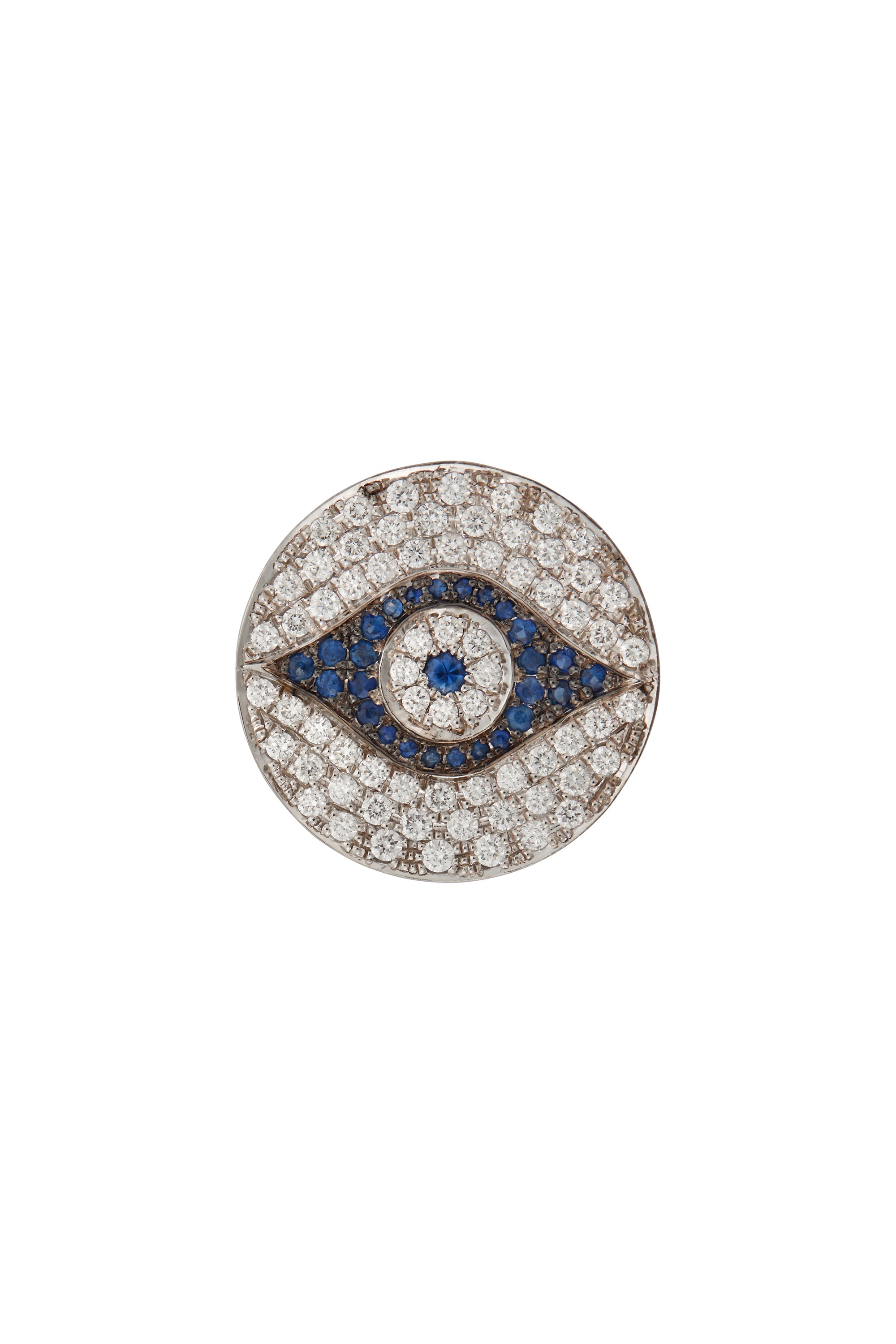 Radiant and refined, Ileana Makri’s Dawn Ring brings a dazzling update to her iconic evil-eye motif. Set in sleek white gold, the round silhouette shimmers with 1.34 carats of brilliant white diamonds framed by a constellation of deep blue sapphires. Bold yet timeless, it’s a luminous statement piece that elevates any look—day or night.