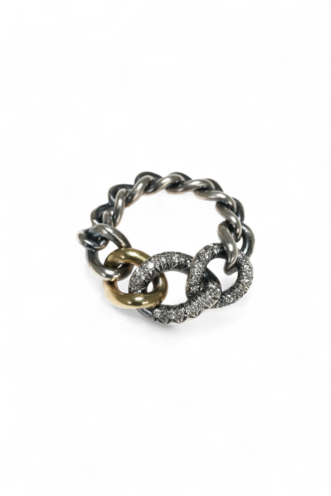 Hum Jewelry Tokyo 925 Silver and 18K Green Gold Chain Ring with .21cts
