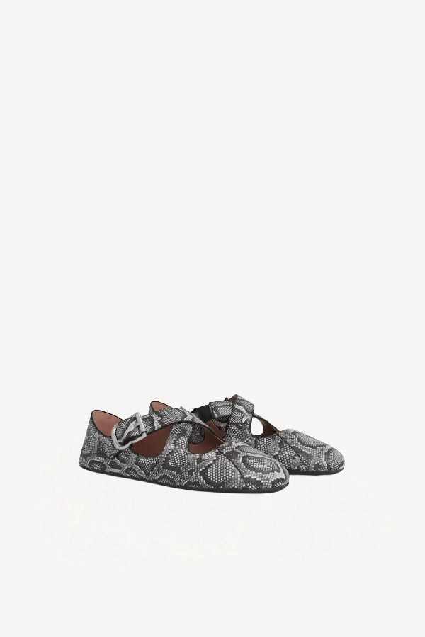 Alaia Criss Cross Ballet Flats draw inspiration from traditional Japanese footwear, blending cultural elegance with modern design. Crafted from luxurious Karung snake leather, these flats feature distinctive crisscross buckle straps that secure the foot with grace and precision. Their rounded toe silhouette offers timeless comfort, while the durable rubber sole provides reliable traction and everyday wearability. Perfect for those seeking a refined yet distinctive touch, these ballet flats combine artisanal craftsmanship with sophisticated style for versatile, elevated dressing.