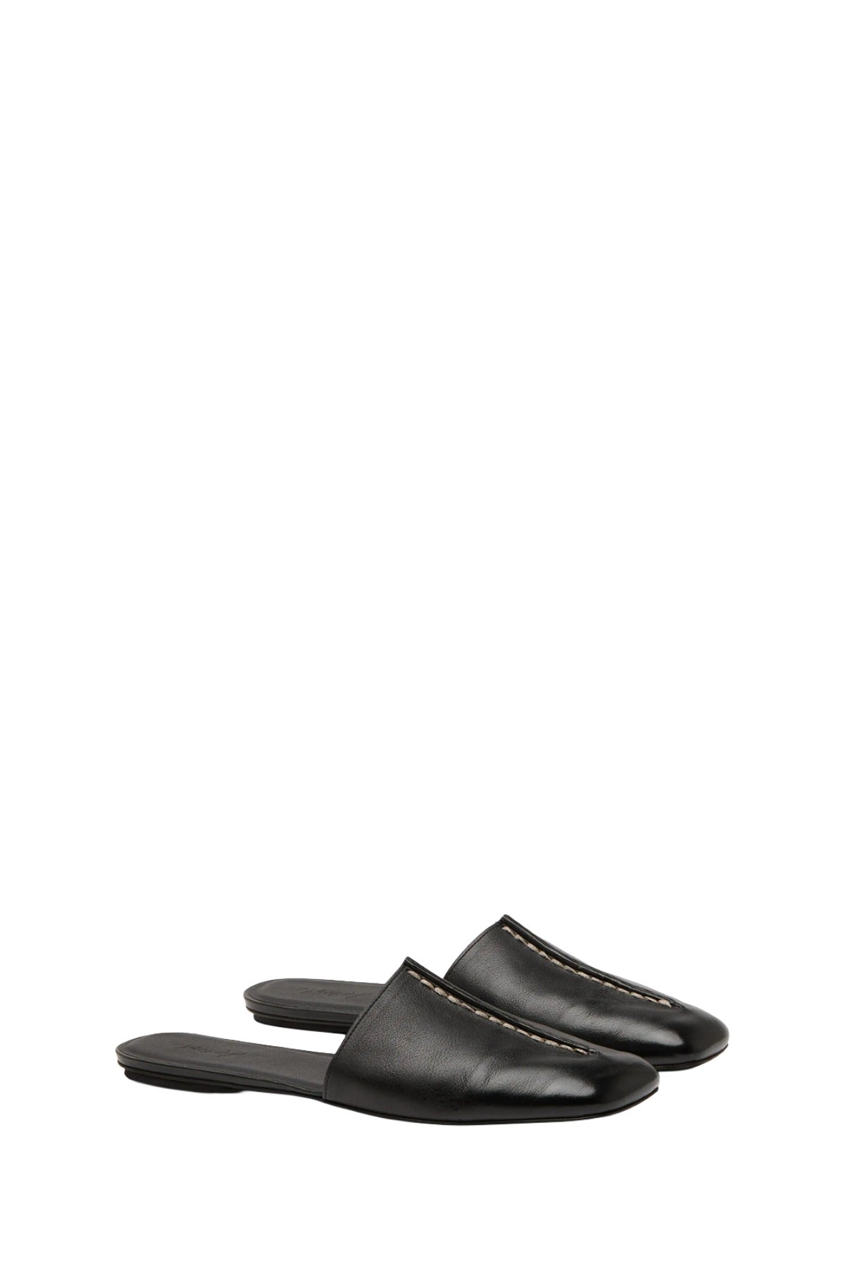 Marsell Quadrangolo Sabot Mule is part of the Spring 26 Collection. Quadrangolo Mule in soft pebbled leather with a minimalist design enhanced by contrasting handmade stitching. The square toe and leather sole with rubber heel complete the model.