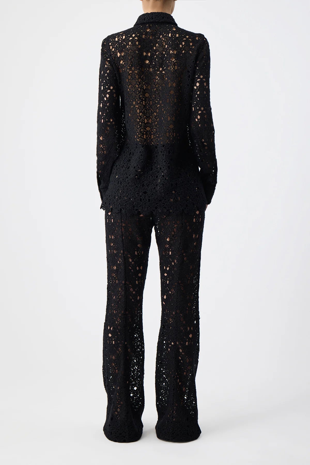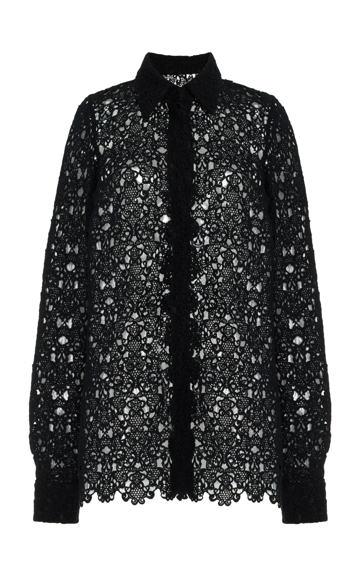 INFO A signature swirl cashmere lace, interpreted from a sketch in Gabriela's personal sketchbook adds to the graphic edge of the heath shirt, creating a stand-out look. A classic collar and hidden placket button-front closure complete this style. Details: