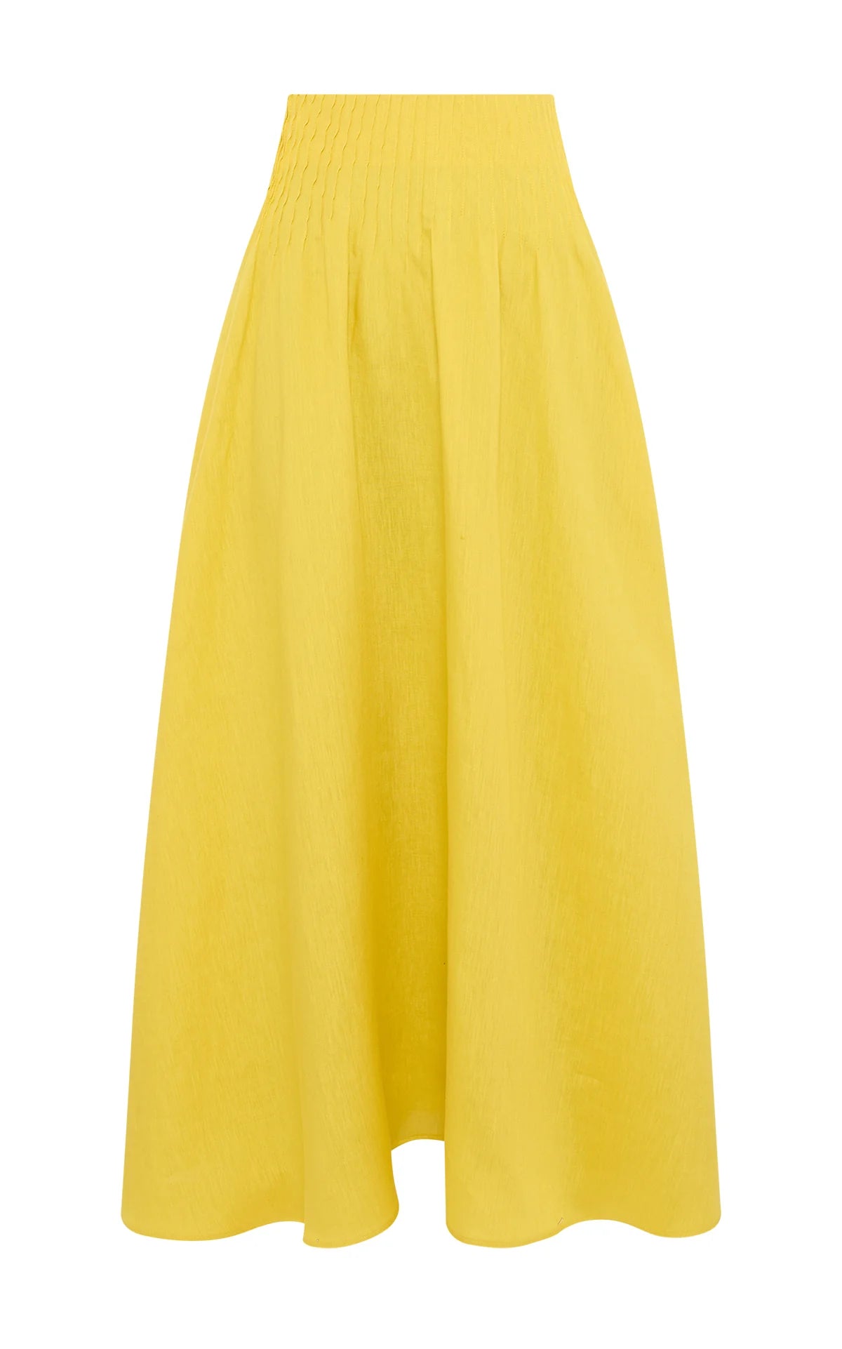Penelope Midi Skirt in Goldenrod Aloe Linen |
