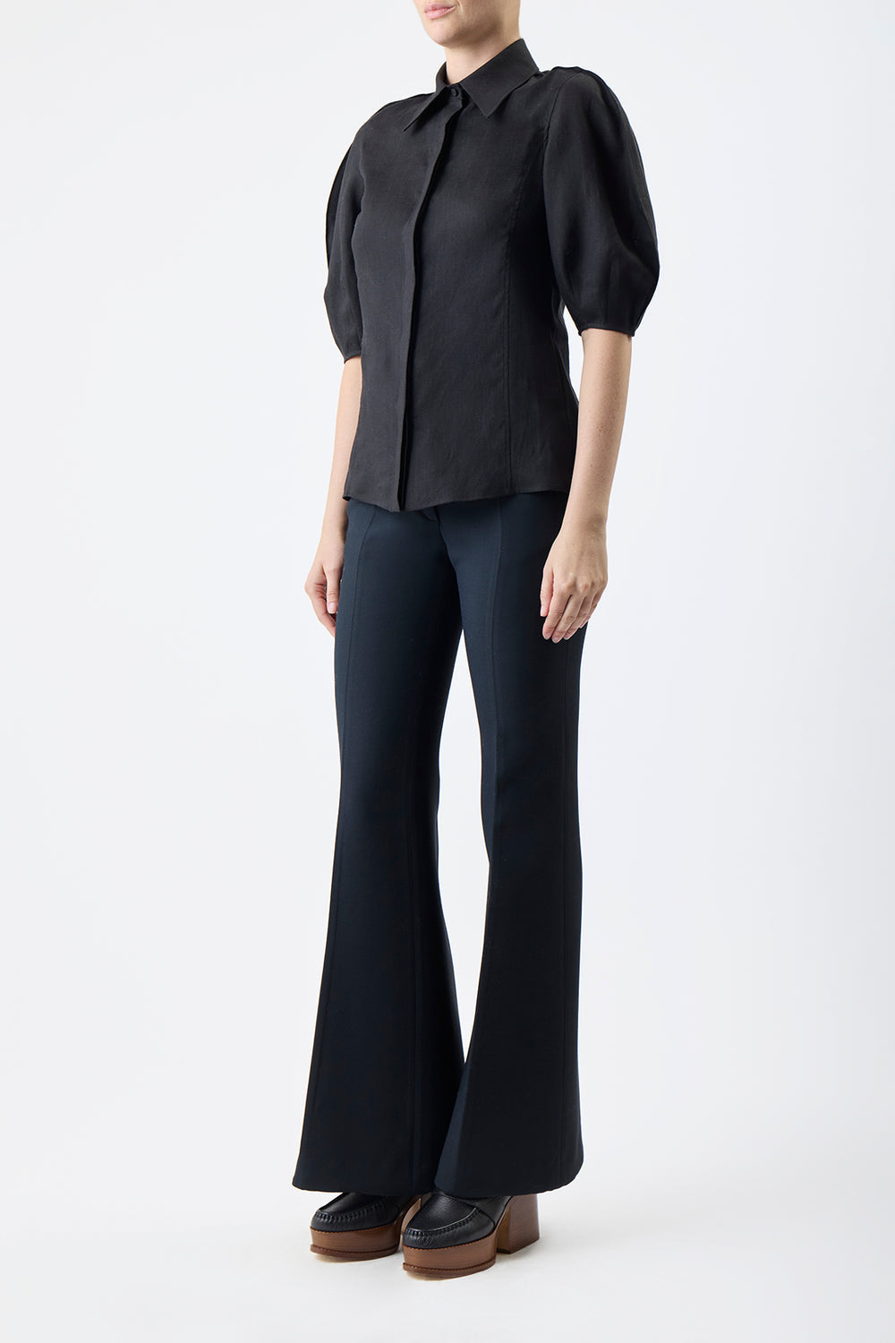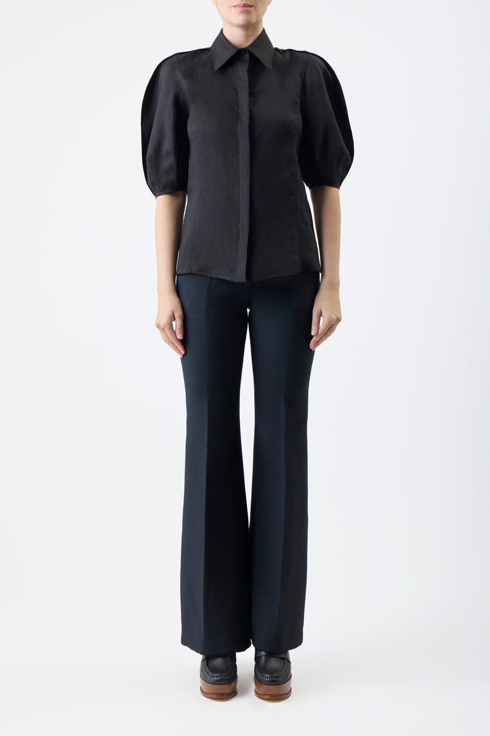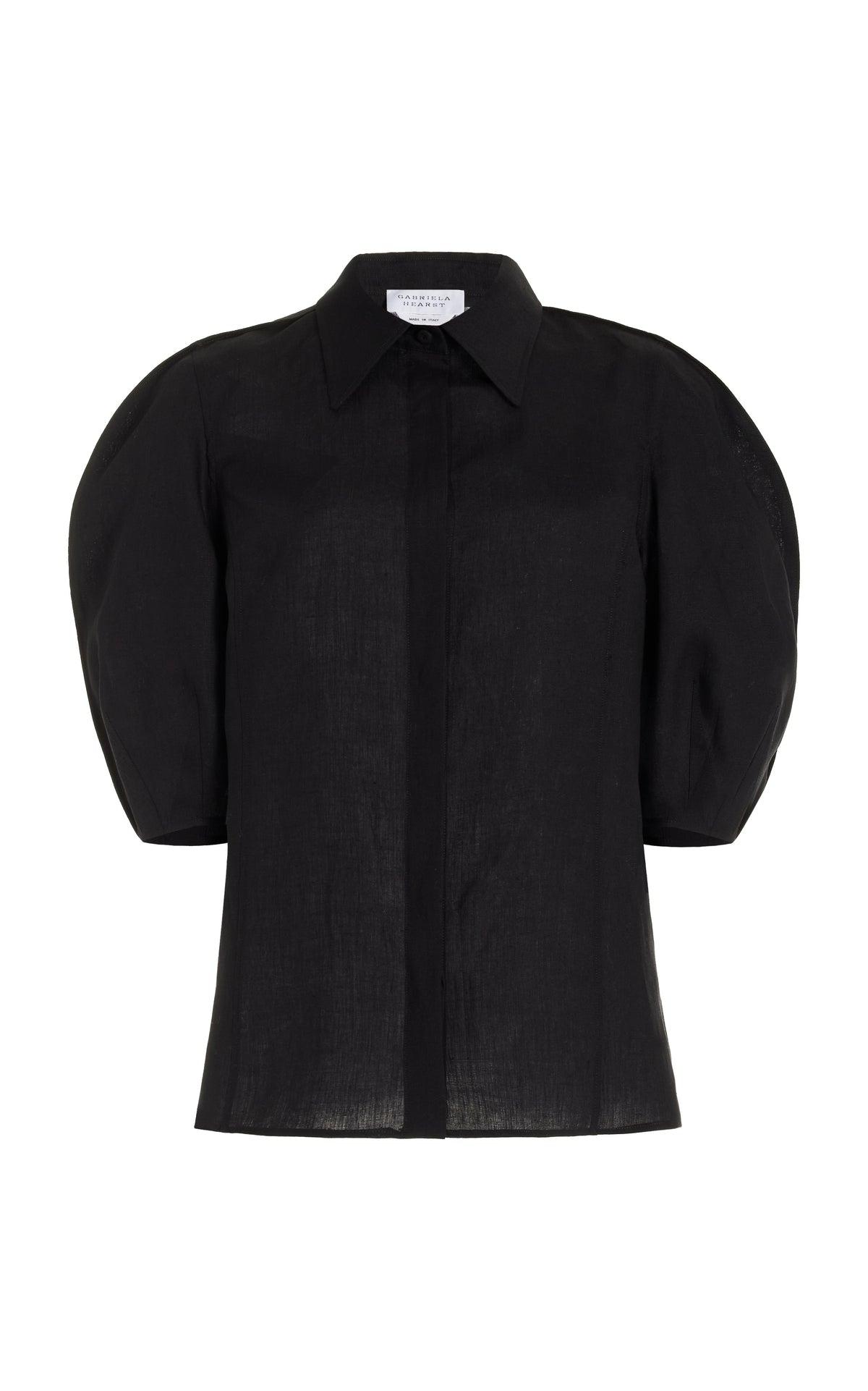INFO The Sansi top in lightweight liquid silk combines a classic button-down shirt complete with a center-front placket and beautifully sculpted full sleeve that ends at the elbow. Details: |