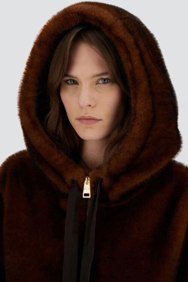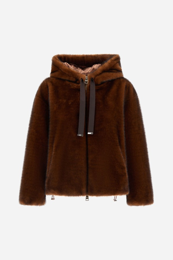 Herno Knitted Bomber Jacket is part of the Fall 25 Collection. Bomber jacket in smooth, short mink-effect melange faux fur with a soft, cosy feel. Combining a dynamic edge and glamorous style, this regular-fit piece features two-way zip fastening and a spacious hood enhanced by an elegant grosgrain drawstring.