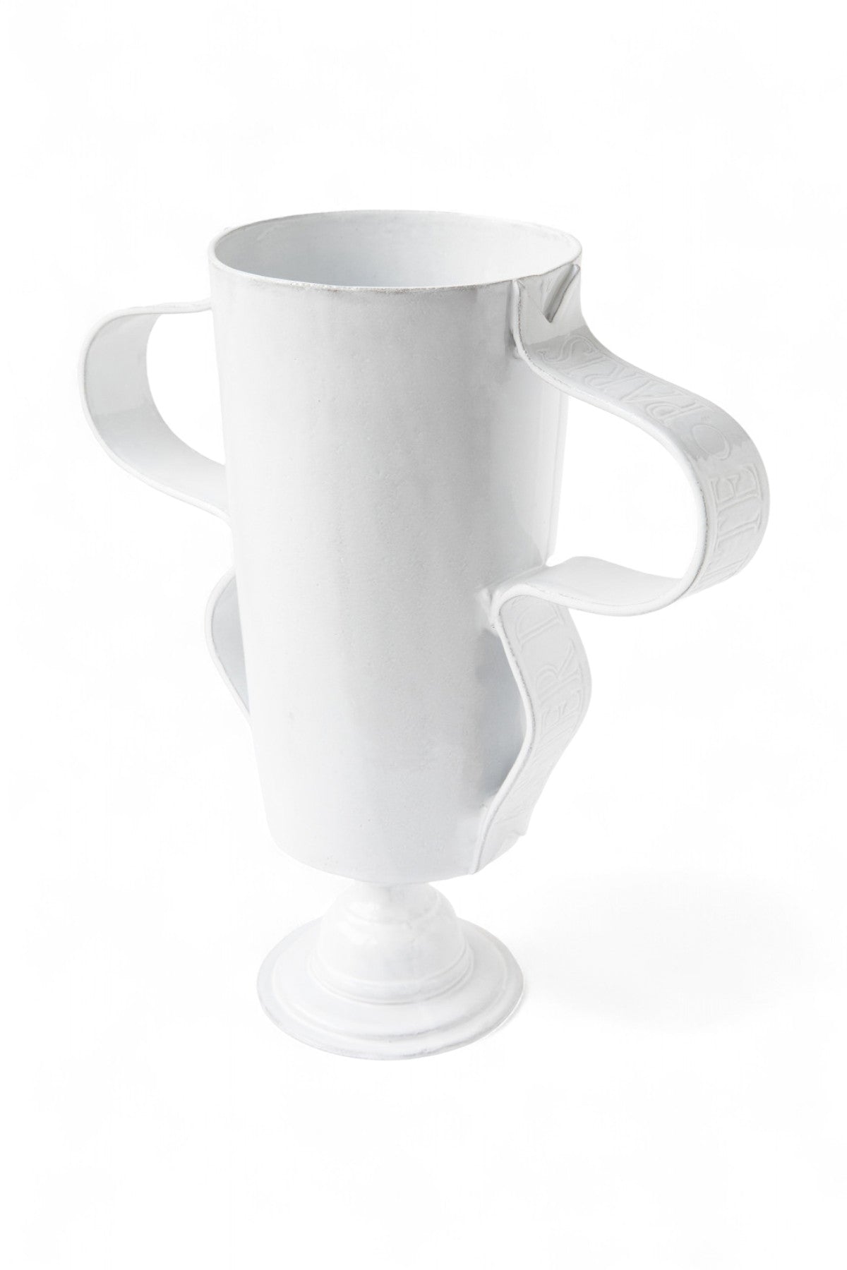 A dramatic, sculptural statement piece handmade in Astier de Villatte’s Paris atelier. Crafted from the maison’s signature ceramic and finished with their luminous milky-white glaze, this large-scale vessel embodies the quiet poetry and artisanal soul that define the brand. Its generous proportions and subtle irregularities reveal the touch of the craftsperson, making it as much a work of art as it is a functional object.