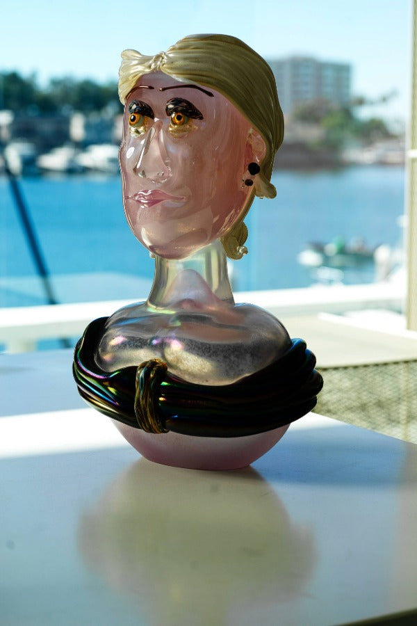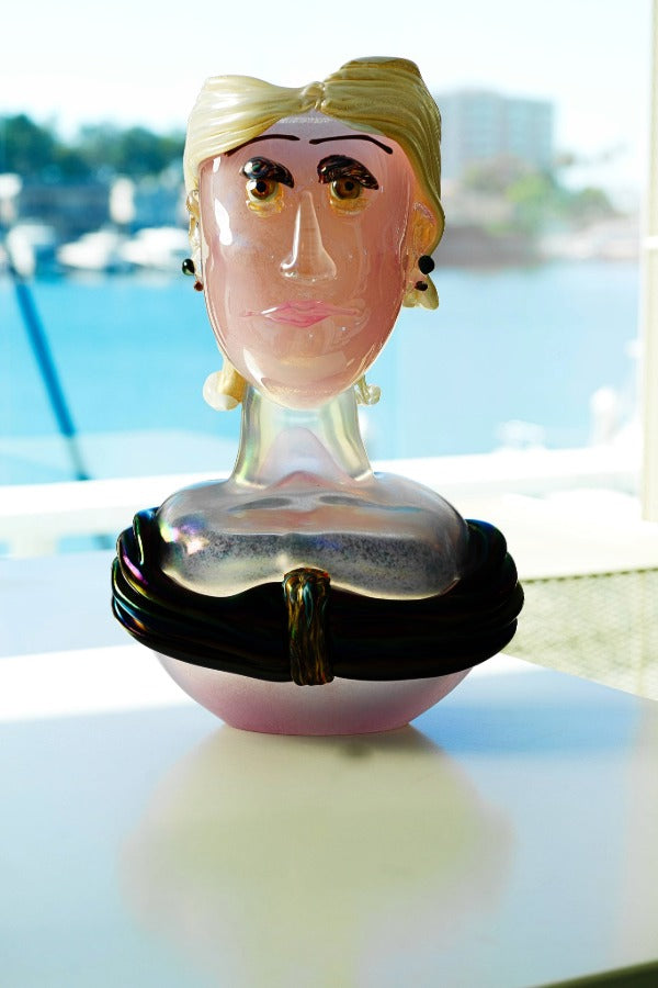 Hugh Findletar Miss Helen Murano glass Vase is a lover, she is part of Hugh's personal collection. Because it's in a special A'maree's home we have the chance to be apart of something that's special to Hugh, Made with pink glass, a lot of energy and exaggerated features.