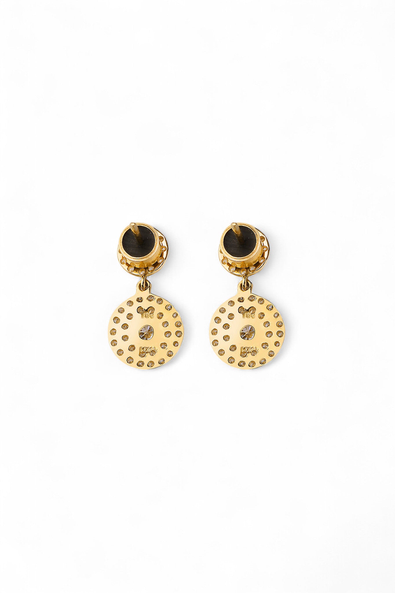 Radiant and richly detailed, Ileana Makri’s Double Solitaire Diamond Earrings spotlight the beauty of champagne diamonds through a striking concentric design. Crafted in 18K yellow gold, each earring features a duo of round motifs, pavé-set with shimmering champagne diamonds and accented by Makri’s signature oxidised detailing, adding depth, contrast, and a touch of antique modernity. Elegant movement, warm golden tones, and luminous sparkle make these earrings an unforgettable statement — effortless for day, captivating for evening.