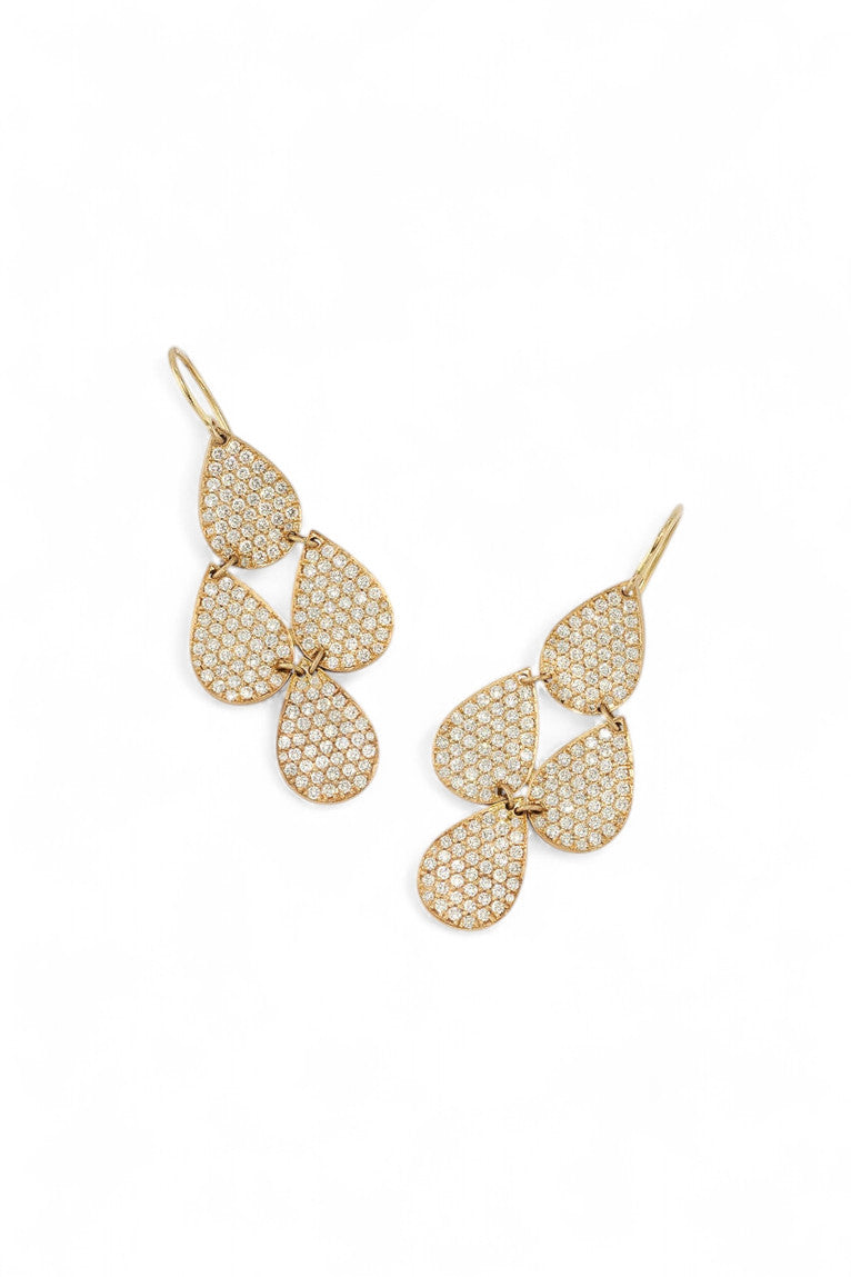 From Irene Neuwirth’s Diamond Collection, these Classic Four Drop Earrings radiate a captivating, all-over brilliance. Each pear-shaped drop is meticulously set in diamond pavé, catching light with every turn. Sculpted in 18k yellow gold, they sway with ease—offering sultry glamour without sacrificing Irene’s signature, effortless California spirit.