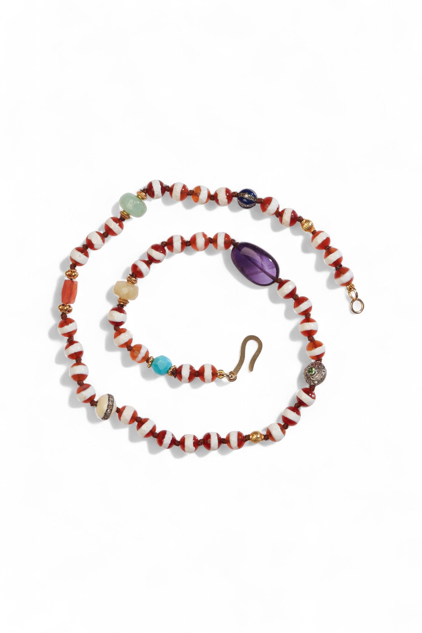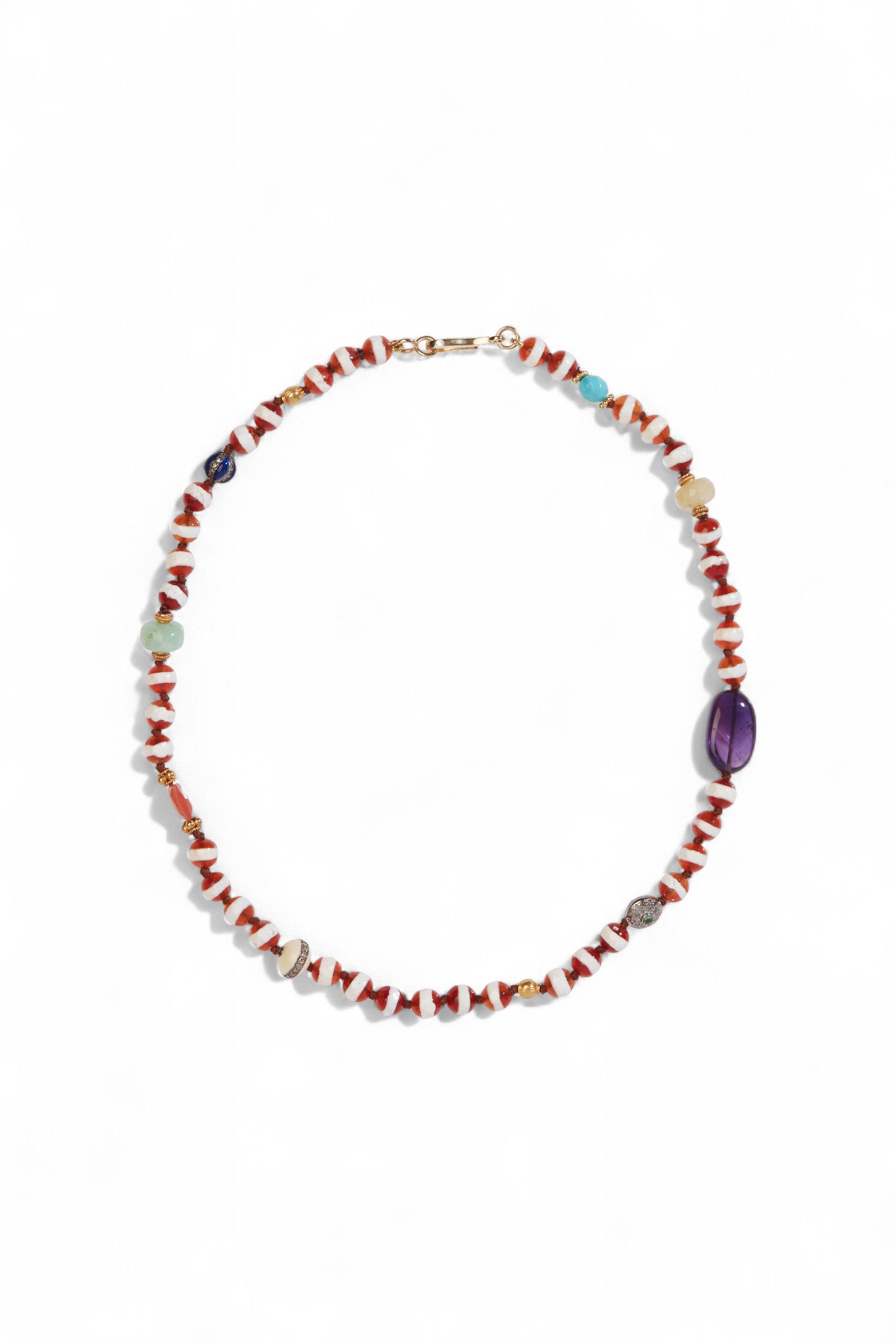 Ileana Makri Brown Agate Stripe Beaded Necklace (40cm)