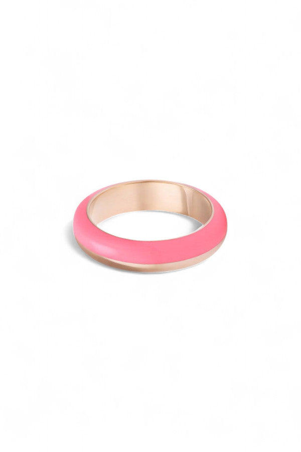 A bold, modern classic from Alice Cicolini’s Candy collection, the Maxi Horizon Band is crafted in 14k yellow gold and finished with a glossy lacquer enamel in vibrant candy-pink. Sleek, sculptural, and irresistibly playful, it’s designed for effortless stacking or as a striking standalone statement. A perfect pop of color for everyday wear.