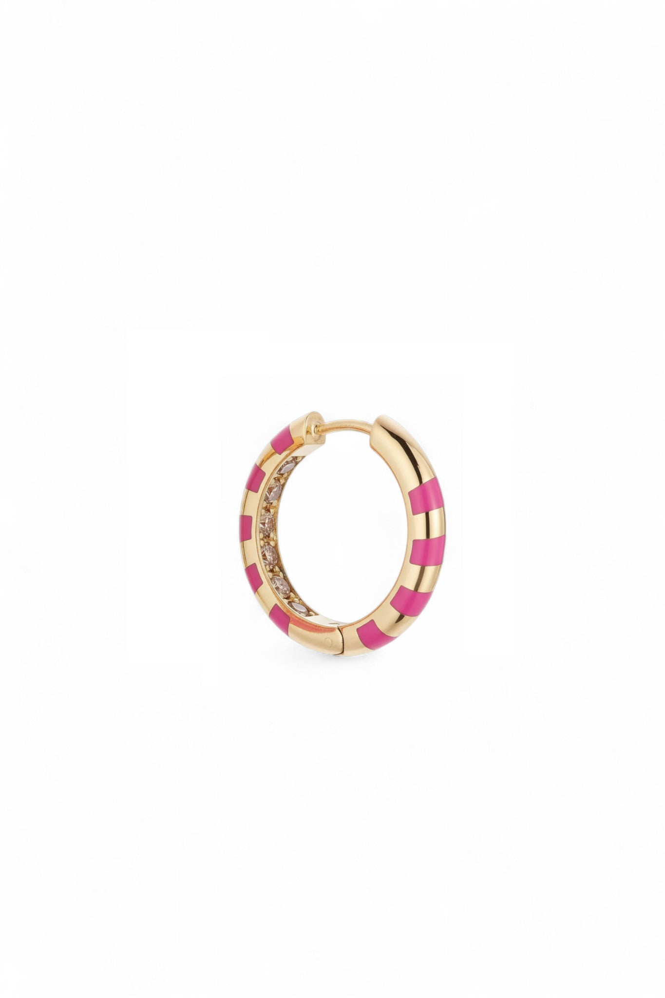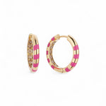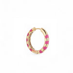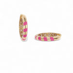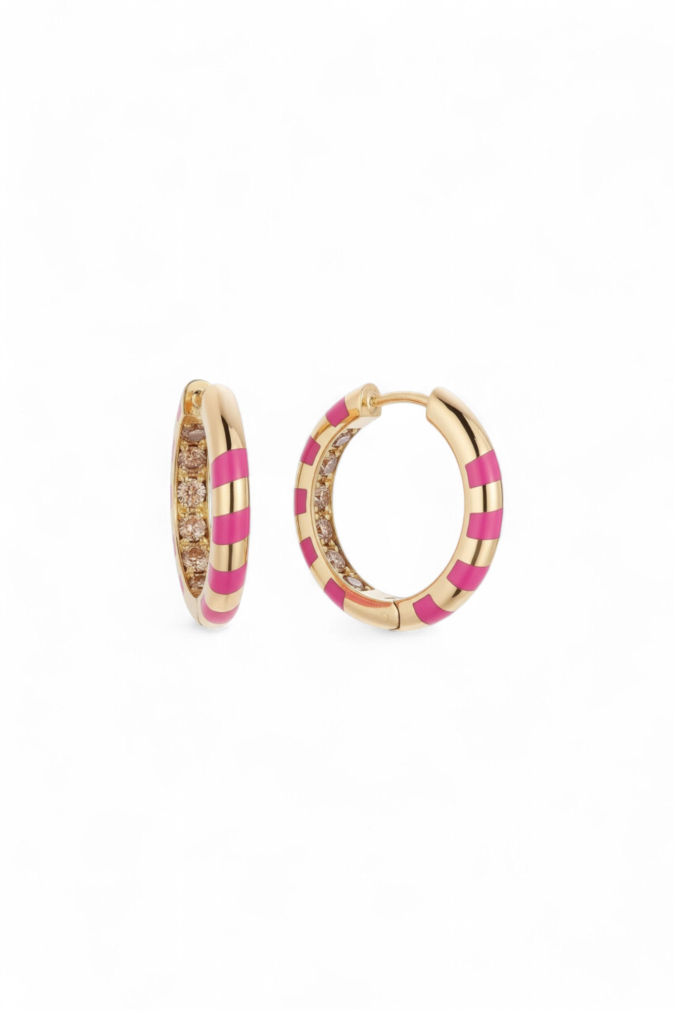 The Memphis Pave Candy Hoops by Alice Cicolini bring playful color and refined craftsmanship together. Crafted in 14k yellow gold, these hoops feature the designer’s signature lacquer–striped enamel and a row of sparkling champagne diamonds set along the inner curve. Bold yet wearable, they add a joyful pop of color to any jewelry collection.