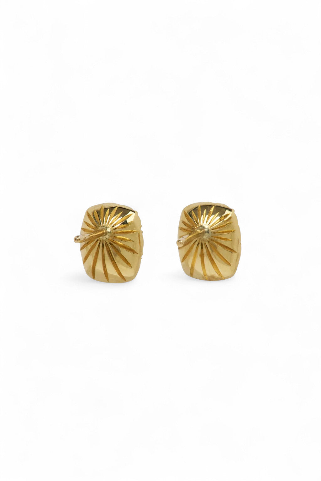 Perfectly balancing handcrafted design with modern style, these Hargreaves earrings have an understated elegance. The soft, rectangles of 18K yellow gold are covered in a surface of shimmering, antique rose cut diamonds. They are engraved with a starburst on their back and connect to 18K yellow gold post backs.