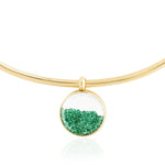 The Trapezio Necklace Emerald in 18-karat gold features a princess style choker with a dangling round Kaleidoscope Shaker™ filled with loose emeralds. This statement piece is perfect to be worn on a night out or at any gala event. To preserve this piece, consult the care instructions.