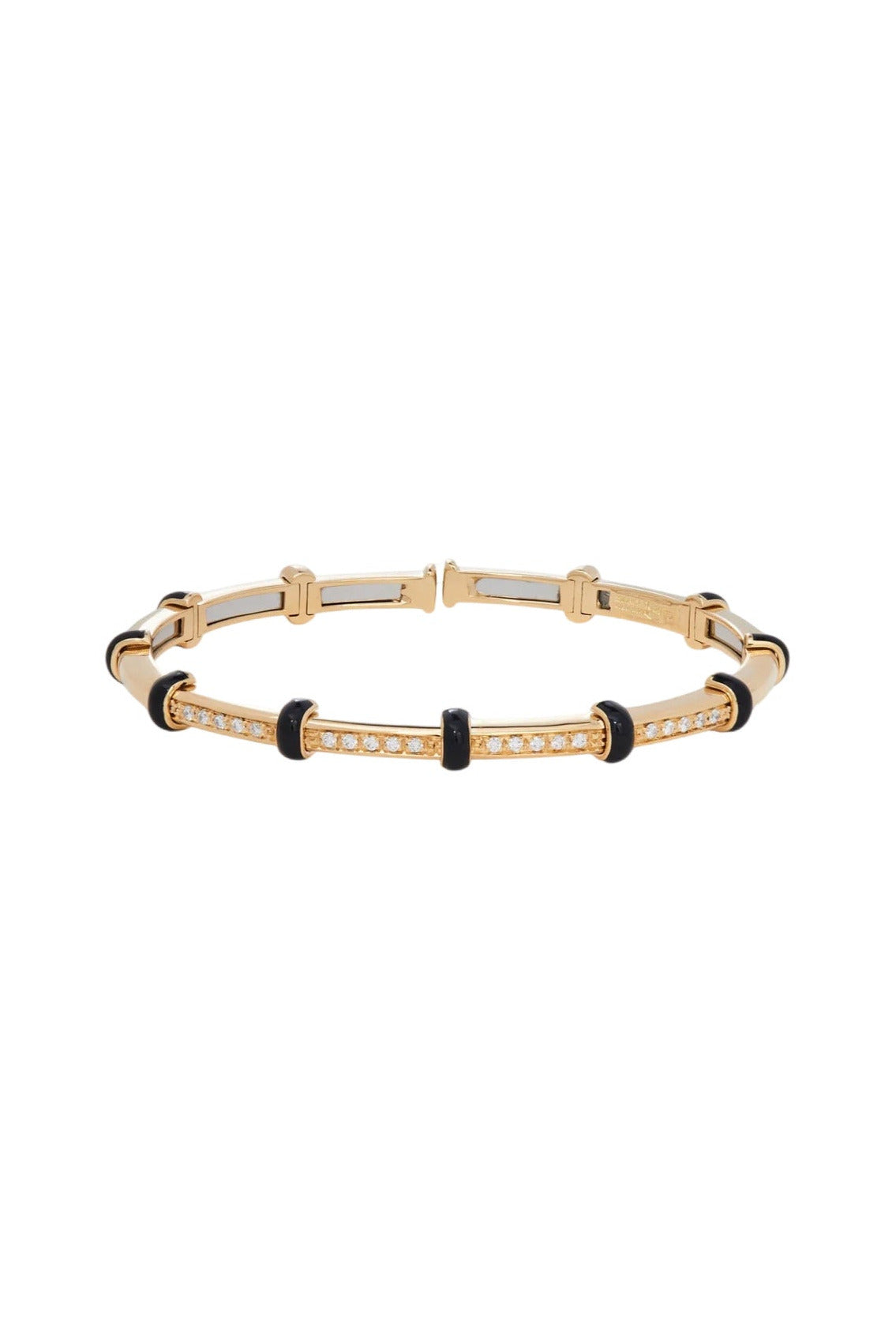 Sidney Garber 18K YG Diamond Small Black Enamel Dome Spring Oval Carly Bracelet