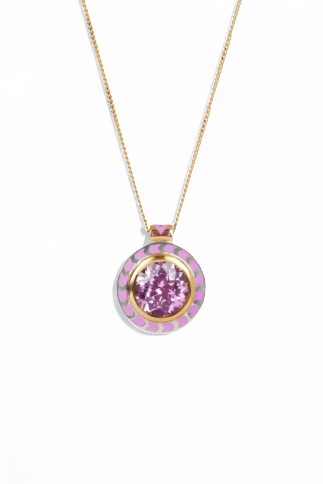 Alice Cicolini Silver Tile Mini Round Rainbow Pendant
