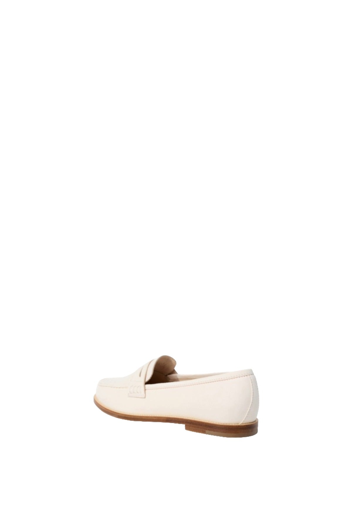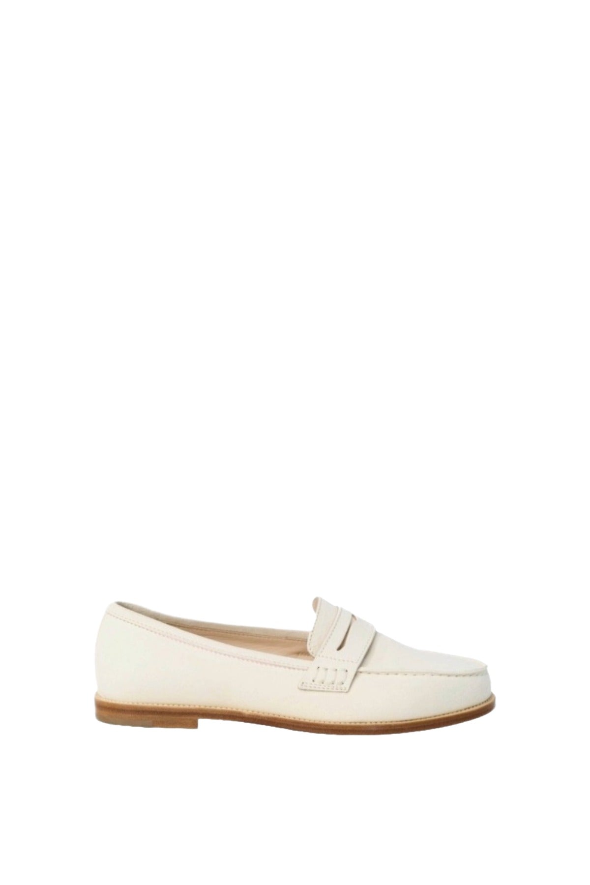 INFO Cream calf leather penny loafers featuring an apron cut design with a decorative penny keeper. 10mm Heel |