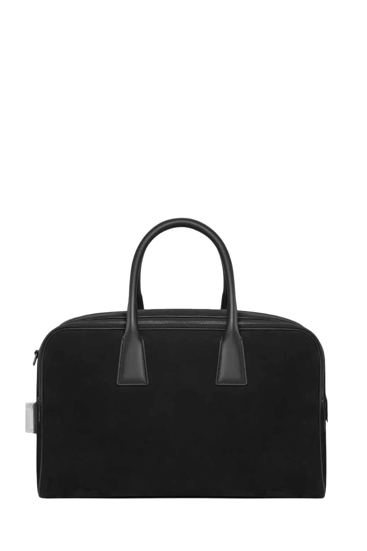 Versatile Weekend Bag in nubuck lined in Alcantara. Double zipped compartments, interior and exterior pockets, trolley sleeve, shoulder strap, Aviteur prism clasp.