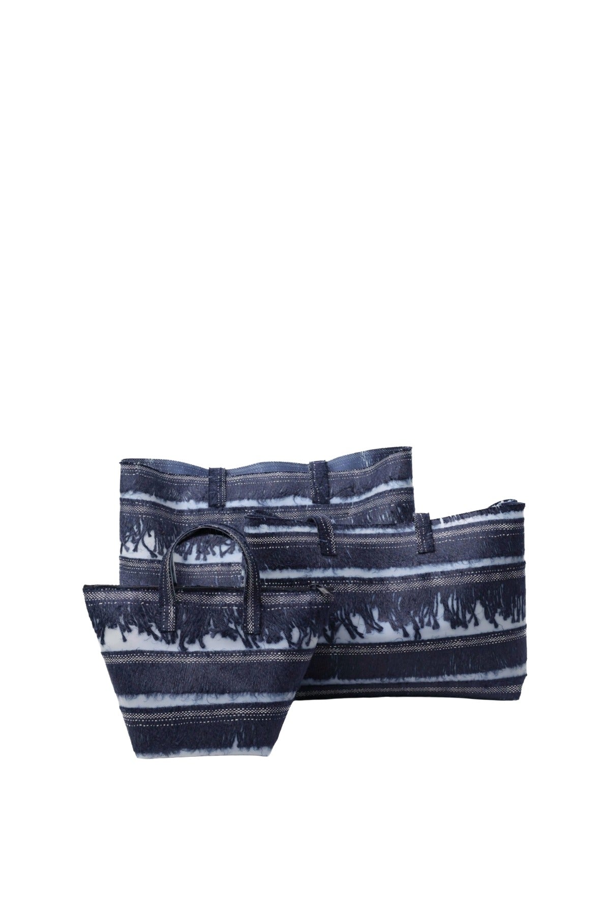 INFO Large Rectangular Bag in Blue. The source of the Industrial Scraps for this bag is Tessitura Enrico Sironi. This collection is made from an innovative and original material called II (eleven), which recycles textile scraps into polyurethane. Each piece is unique. II (Eleven) is the result of two elements perceived as opposite and contradictory: I: the textile element, warm, precious, soft + I: the plastic element, cold, rigid, cheap = II: as not the sum of the two but a third element, more then the two together. |