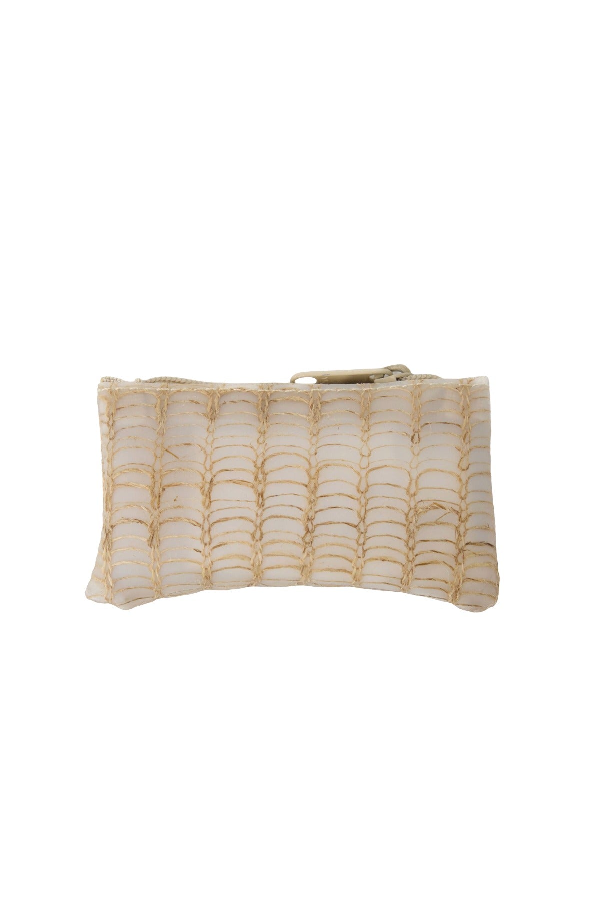 INFO Small Coin Purse in Beige. This collection is made from an innovative and original material called II (eleven), which recycles textile scraps into polyurethane. Each piece is unique. II (Eleven) is the result of two elements perceived as opposite and contradictory: I: the textile element, warm, precious, soft + I: the plastic element, cold, rigid, cheap = II: as not the sum of the two but a third element, more then the two together. |