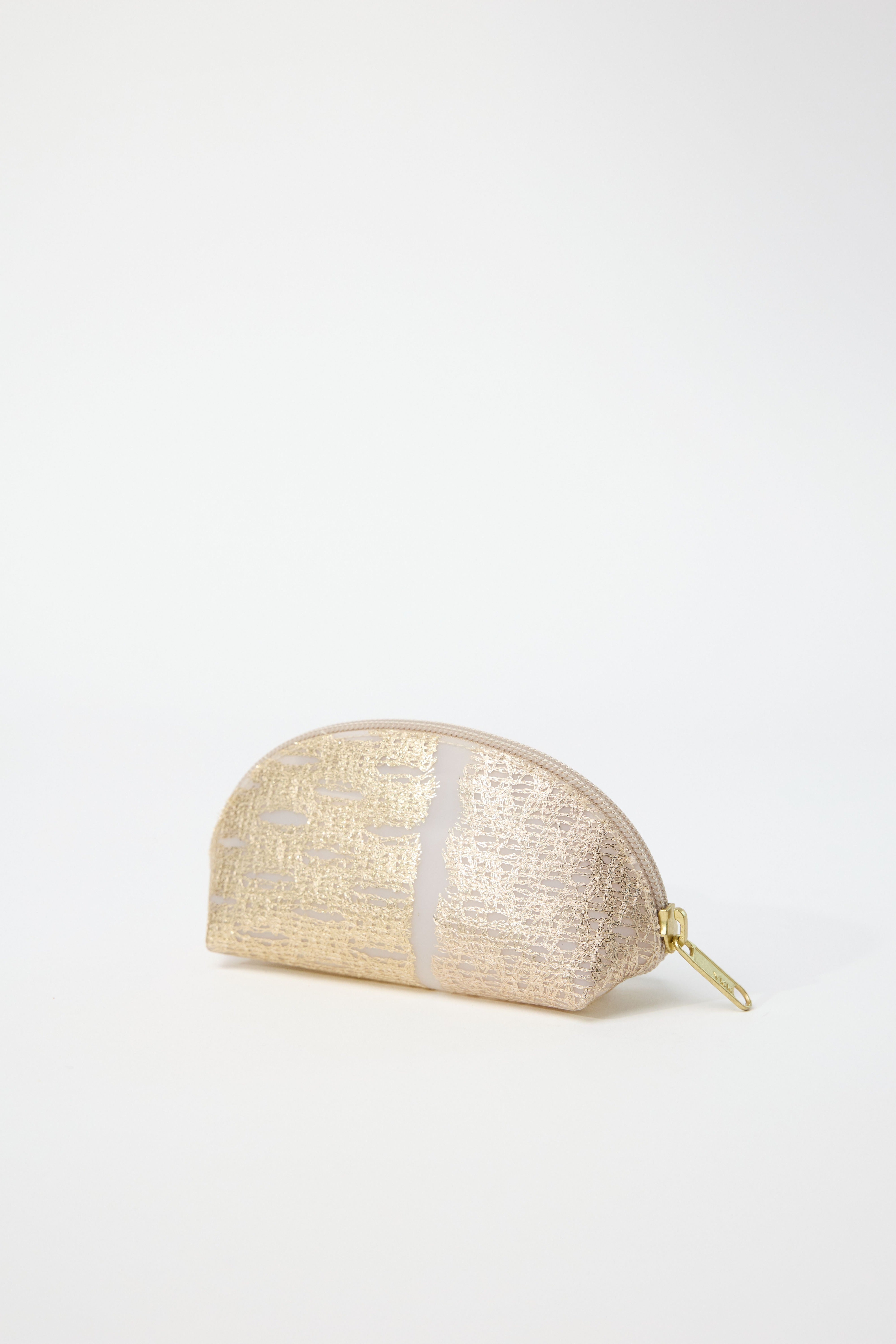 INFO Small Round Pouch in Metallic Gold. This collection is made from an innovative and original material called II (eleven), which recycles textile scraps into polyurethane. Each piece is unique. II (Eleven) is the result of two elements perceived as opposite and contradictory: I: the textile element, warm, precious, soft + I: the plastic element, cold, rigid, cheap = II: as not the sum of the two but a third element, more then the two together. |