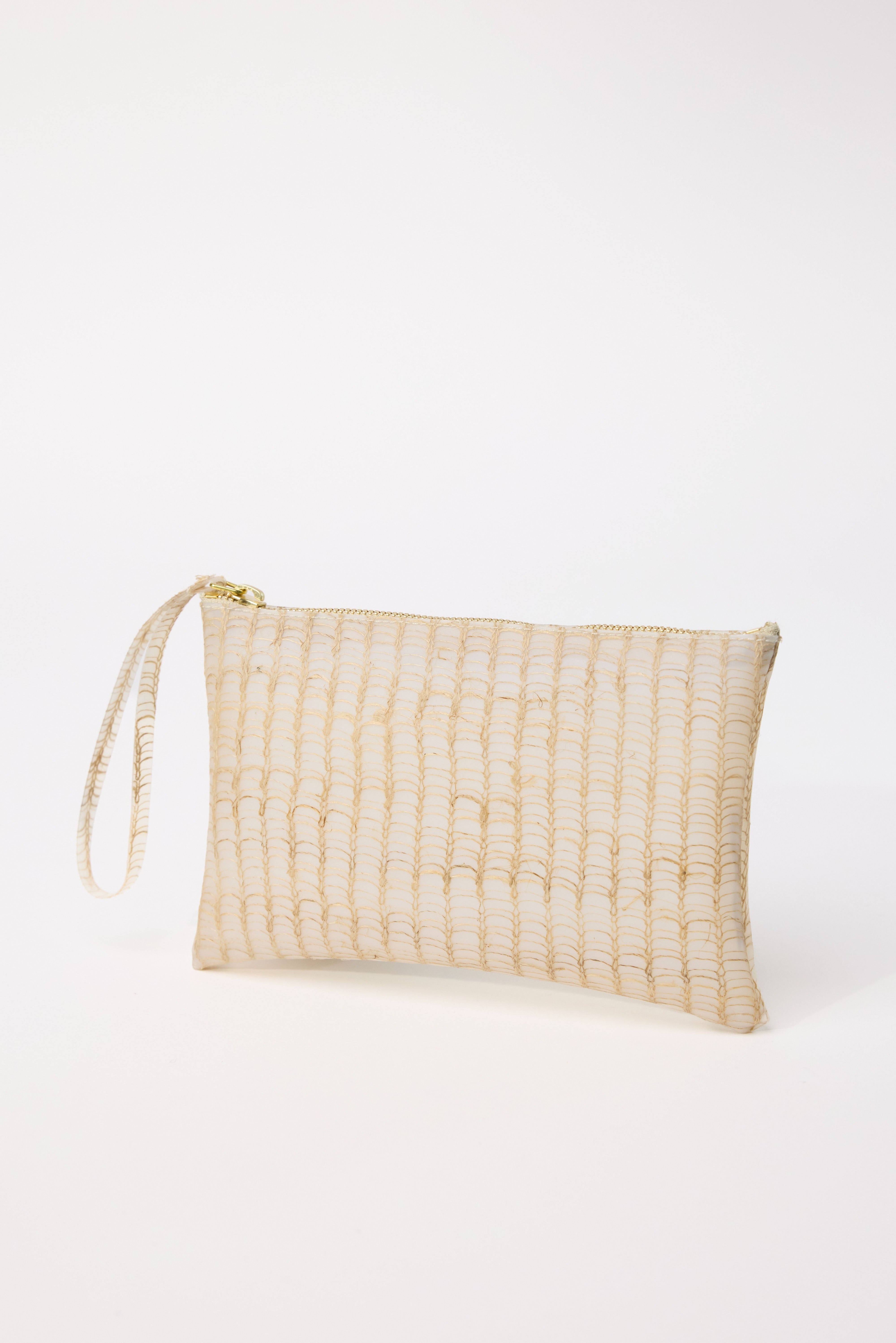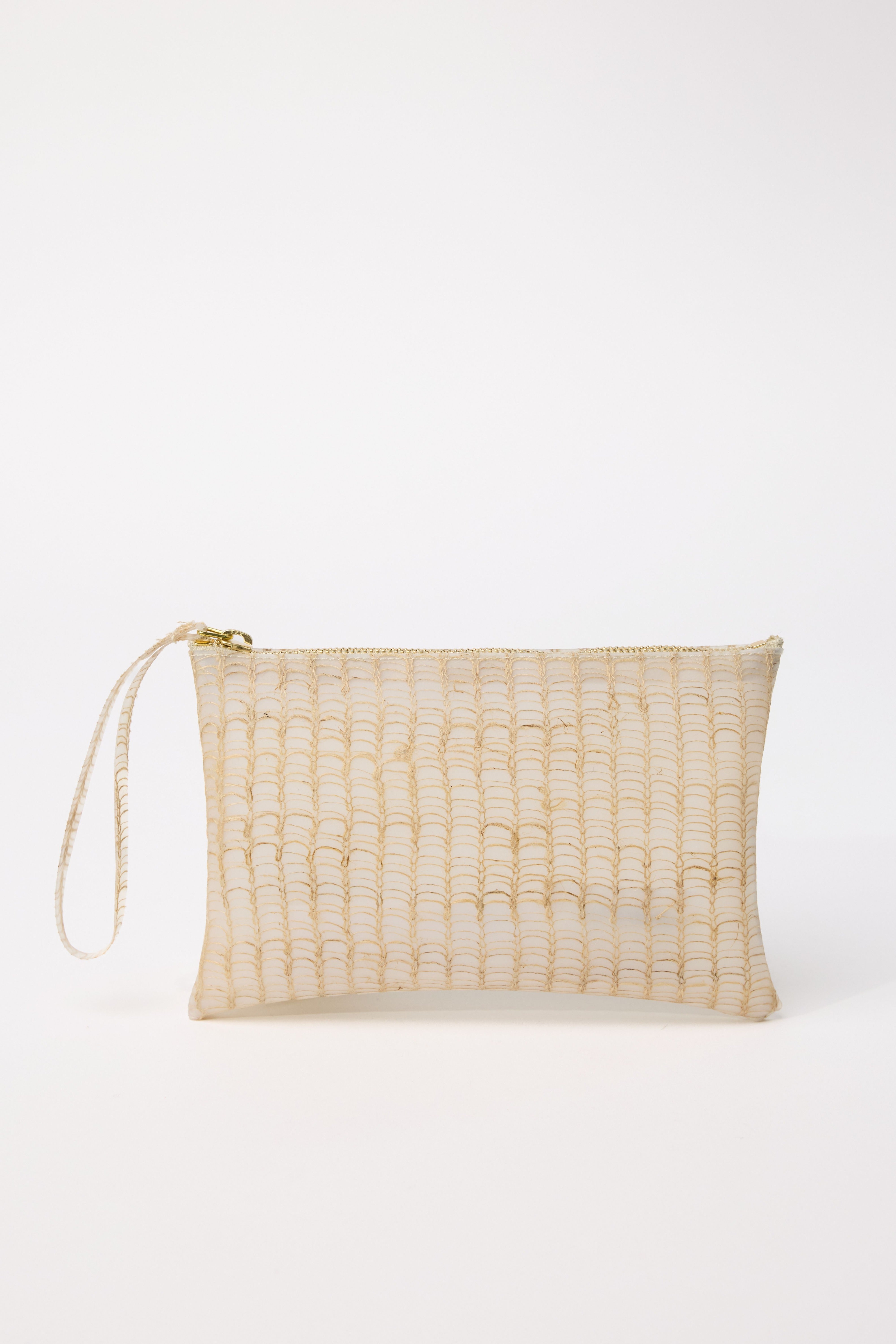INFO Rectangular Pouch with Strap in Beige. This collection is made from an innovative and original material called II (eleven), which recycles textile scraps into polyurethane. Each piece is unique. II (Eleven) is the result of two elements perceived as opposite and contradictory: I: the textile element, warm, precious, soft + I: the plastic element, cold, rigid, cheap = II: as not the sum of the two but a third element, more then the two together. |