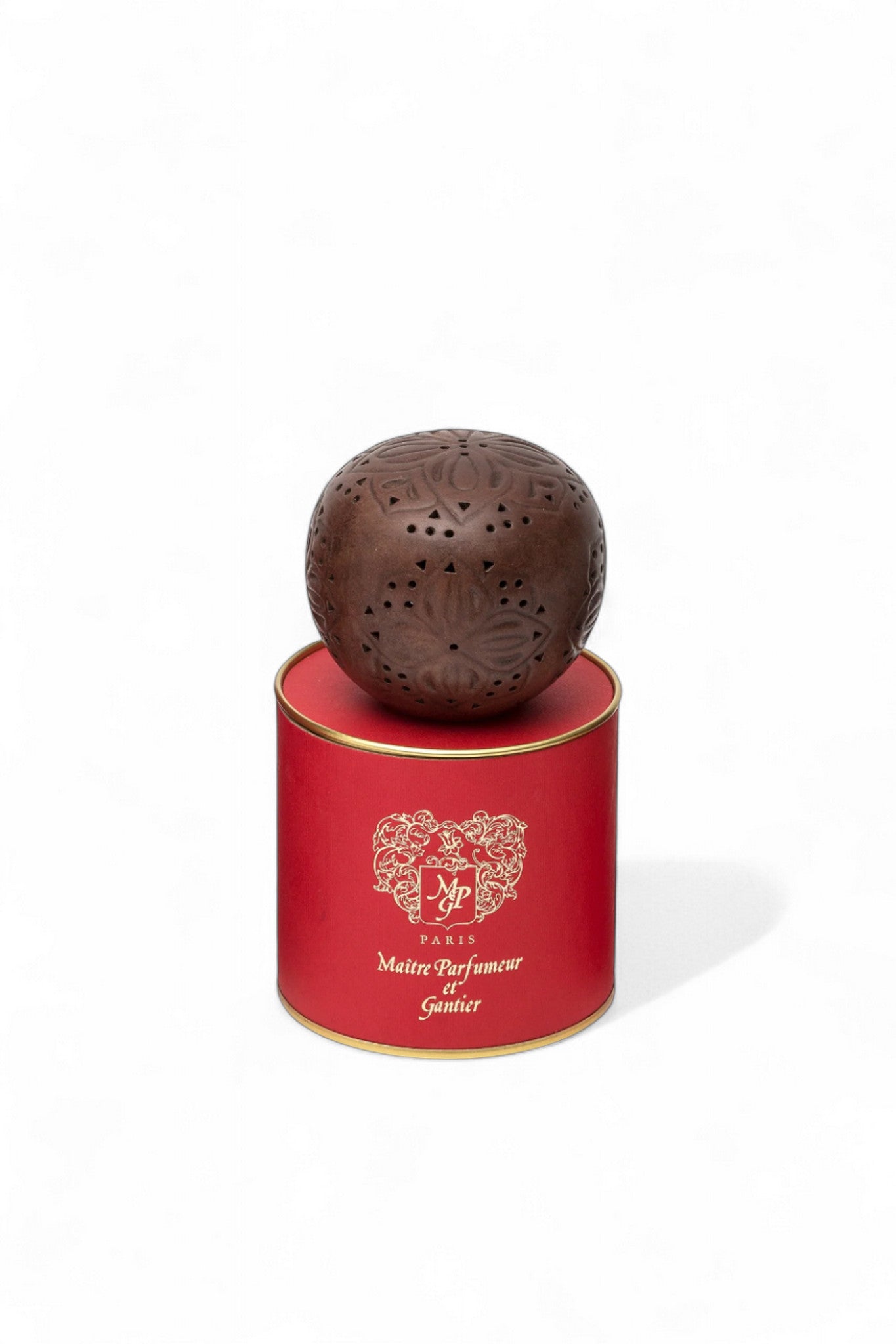 A signature object of the maison, the Pomme d’Ambre is a handcrafted terracotta sphere designed to perfume a space with quiet elegance. Infused with MPG’s warm, sweet blend of amber, balsams, vanilla, and tree moss, it releases its fragrance slowly and naturally over several months.